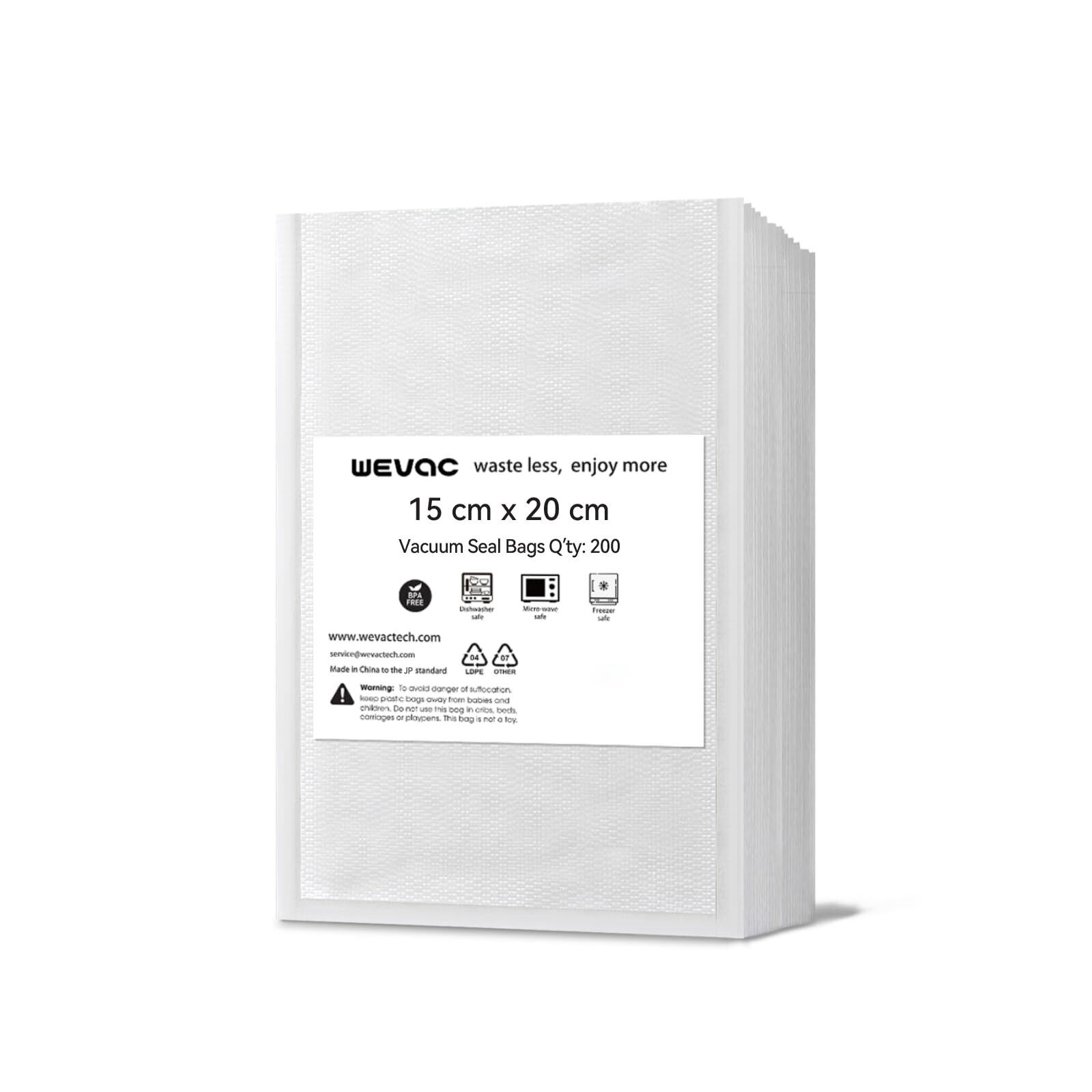 Wevac 真空パック袋 15×20cm 200枚いり しんくうぱっく 真空袋 カット済み エンボス加工 脱気しやい 密閉性 野菜 お米 お魚 犬のフード 鮮度長持ち 食品保存 低温調理 真空パック機 真空シーラー 用 業務用 家庭用