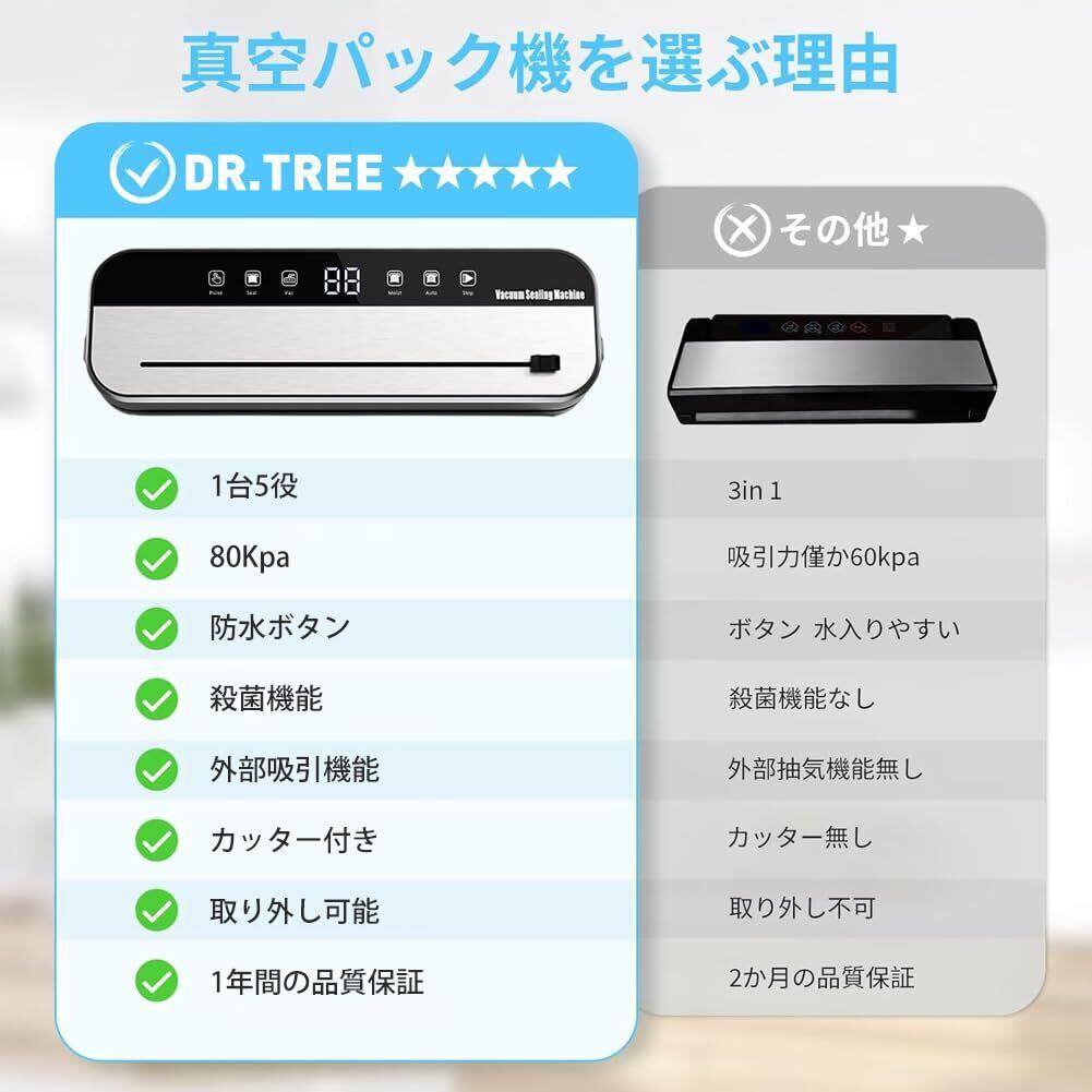 DR.TREE 新登場 家庭用真空パック機 【シール+手動脱気+乾湿両用+外部吸引】 30cm延長圧着口 80kpa超大吸引力 真空保存 低騒音 操作簡単 コンパクト軽量 食材鮮度保持 フードシーラー汁物対応