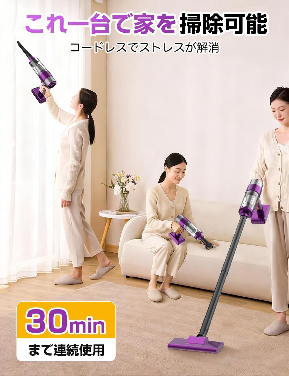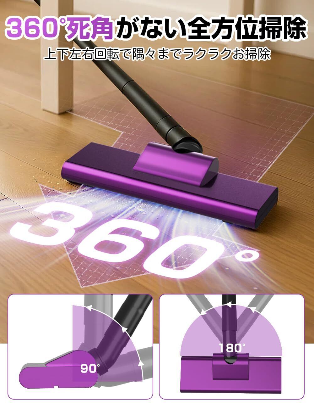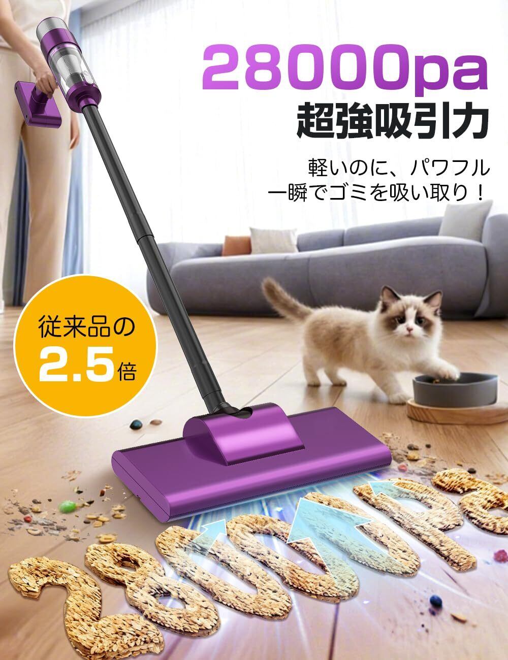 【限定セール】掃除機 コードレス【2025改良進化モデル】28000pa超強力吸引 軽量 コードレス掃除機 Type-C usb充電式 LEDライト付 スティッククリーナー ハンディークリーナー そうじき 車用そうじき HEPA多重濾過 多種類ノズル 省エネ 2WAY 静音設計 家庭用/一人暮らし/フロア/カーペット/車に適用(Deep Purple)