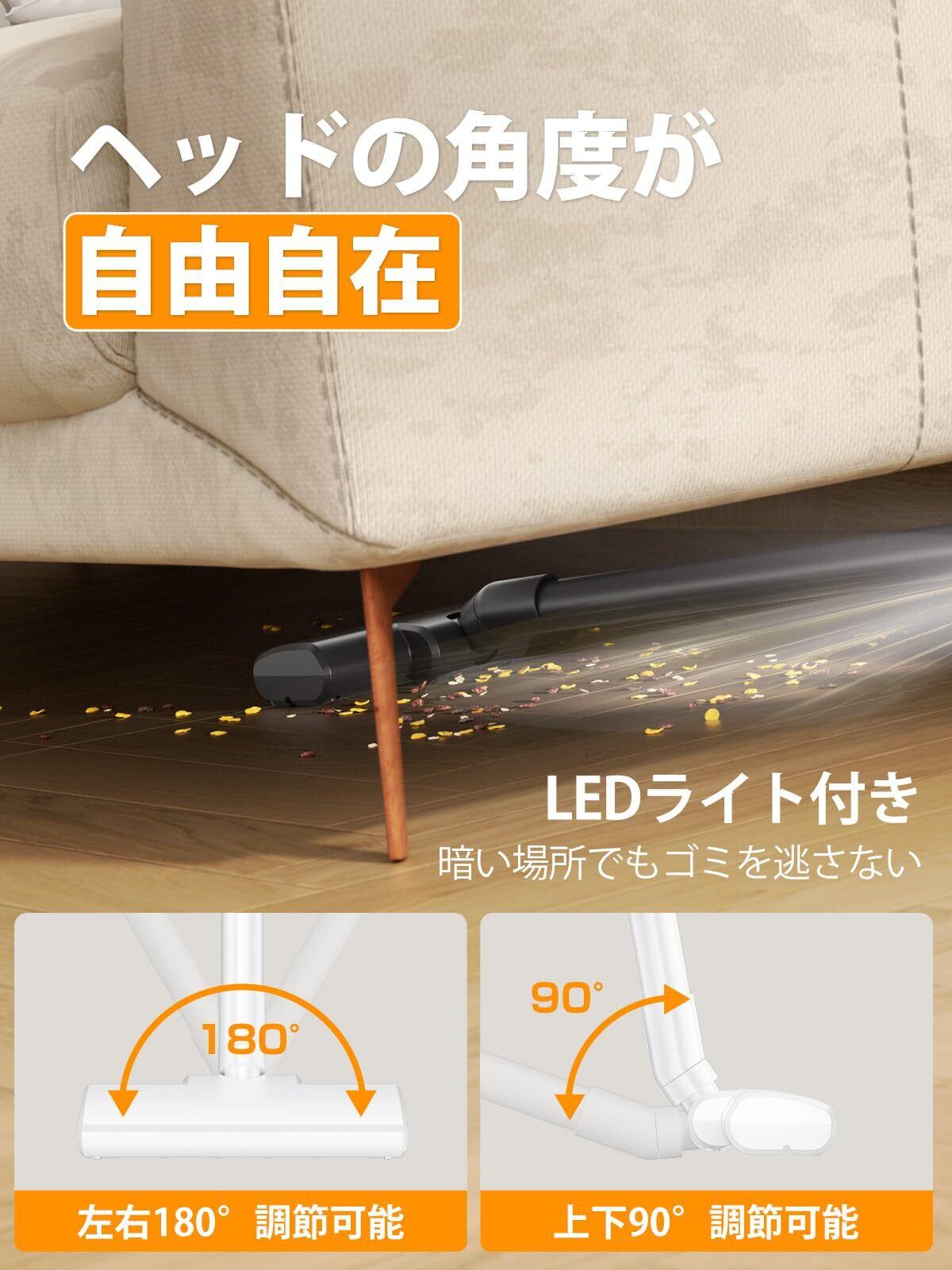 ■【便利なLEDライト付き!】掃除機のヘッドにはLEDライトが付いており、 dimly litの場所でも隠れたゴミを見逃すことがありません。掃除の際、視認性が格段にアップします。