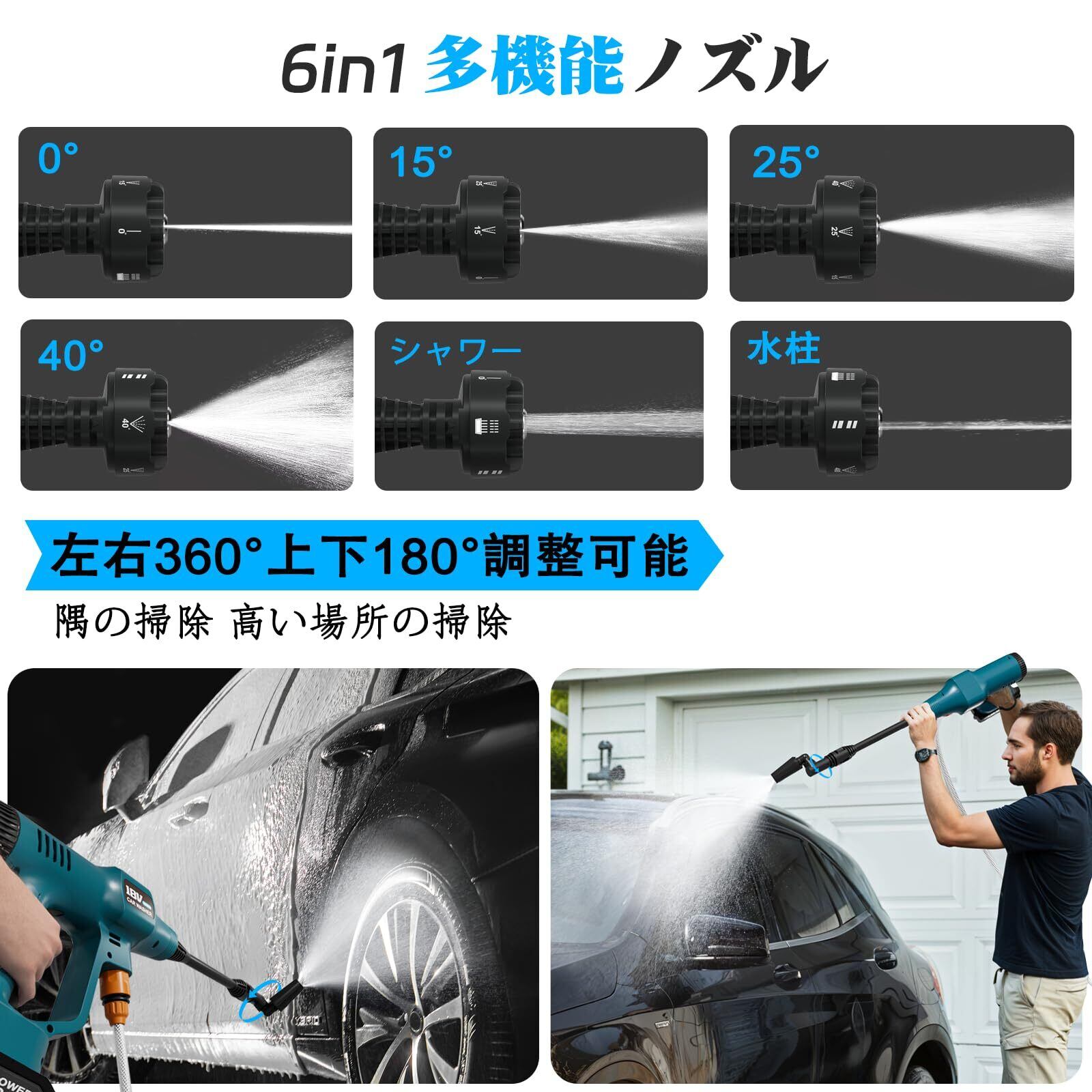 高圧洗浄機 コードレス 充電式 大容量バッテリ 家庭用 洗車 ーと20000mAh のマキタ互換バッテリーが付属 LED残量表示 バッテリー 自吸式 低騒音 噴射距離10M ペットボトル対応 6in1ノズル フォームガン付き コンパクト 多機能 洗車機 高圧洗浄器 軽量 ポータブル 水圧 ハンディ墓石/庭/屋外/階段/外壁/ベランダ/年末大掃除 日本語取扱説明書