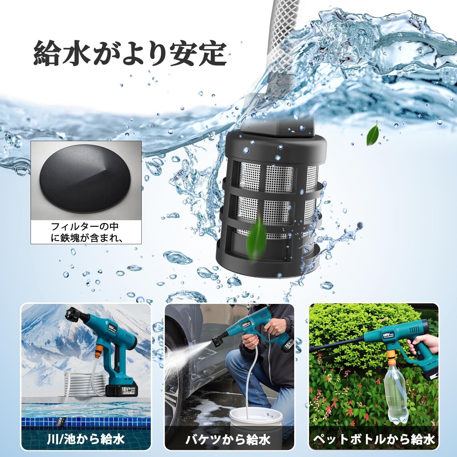 【持ち運びが簡単で、どこでも清潔】給水ホースをバケツや川、池に入れるだけで、自給自足の給水が可能です。また、付属のコークコネクターをコークボトルに接続して給水することもできます。 給水フィルターを改良し、水源から汚染物質を深くろ過することで、地域の水道の制約から解放され、水道料金の節約に役立ちます。 高圧洗浄機本体とバッテリーの総重量はわずか1.35kg。 女性や年配の方でも簡単に操作できます。 コンパクトに収納でき、持ち運びにも便利な収納ボックスも付属しています。 どこへでも気軽に持ち運び、好きなときに掃除ができます。水温は0℃から40℃まで対応し。 このポータブル高圧洗浄機コードレス充電式は、ご自分用にはもちろん、お友達やご家族へのプレゼントにも最適です。