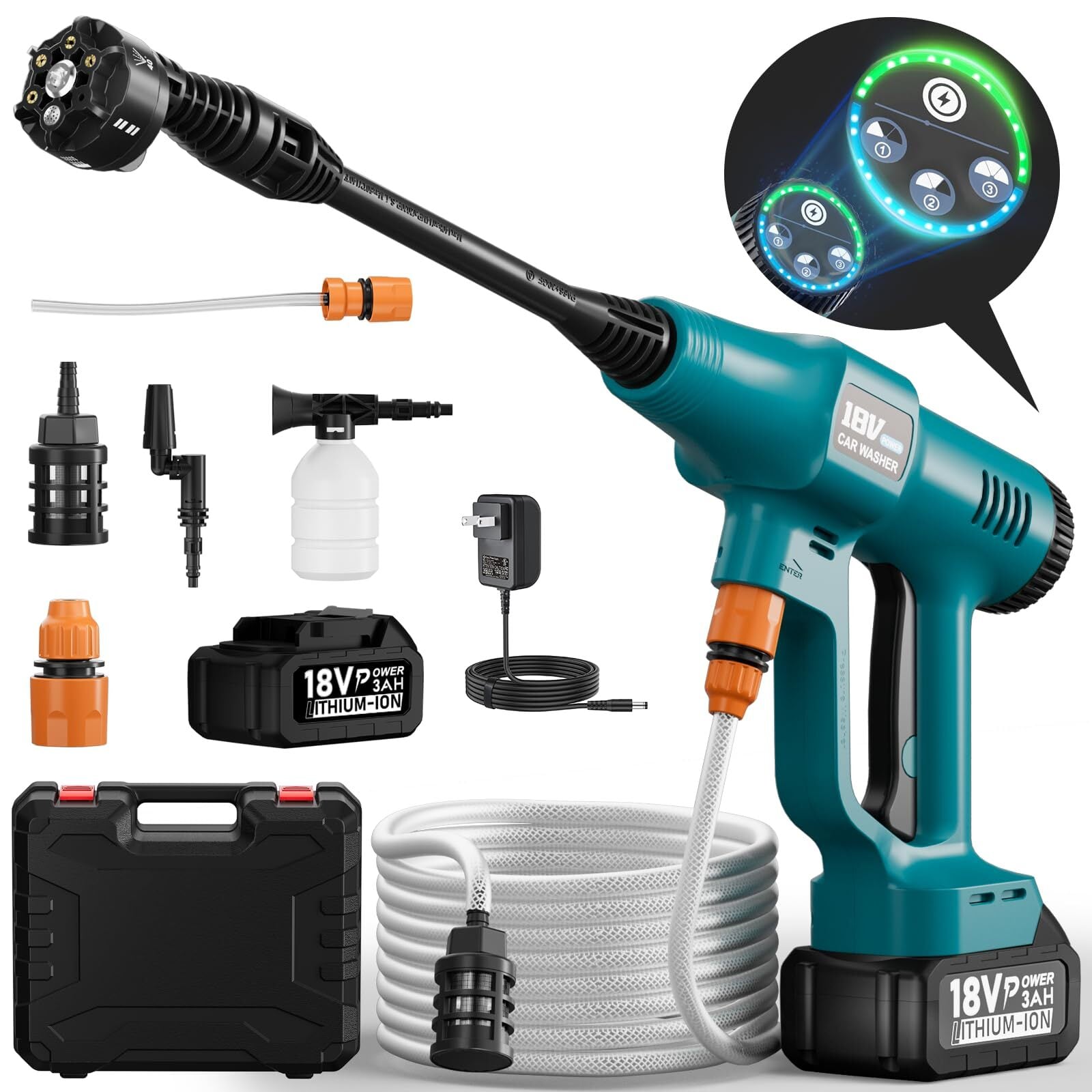 【数量限定】高圧洗浄機 コードレス 充電式 大容量バッテリ 家庭用 洗車 ーと20000mAh のマキタ互換バッテリーが付属 LED残量表示 バッテリー 自吸式 低騒音 噴射距離10M ペットボトル対応 6in1ノズル フォームガン付き コンパクト 多機能 洗車機 高圧洗浄器 軽量 ポータブル 水圧 ハンディ墓石/庭/屋外/階段/外壁/ベランダ/年末大掃除 日本語取扱説明書
