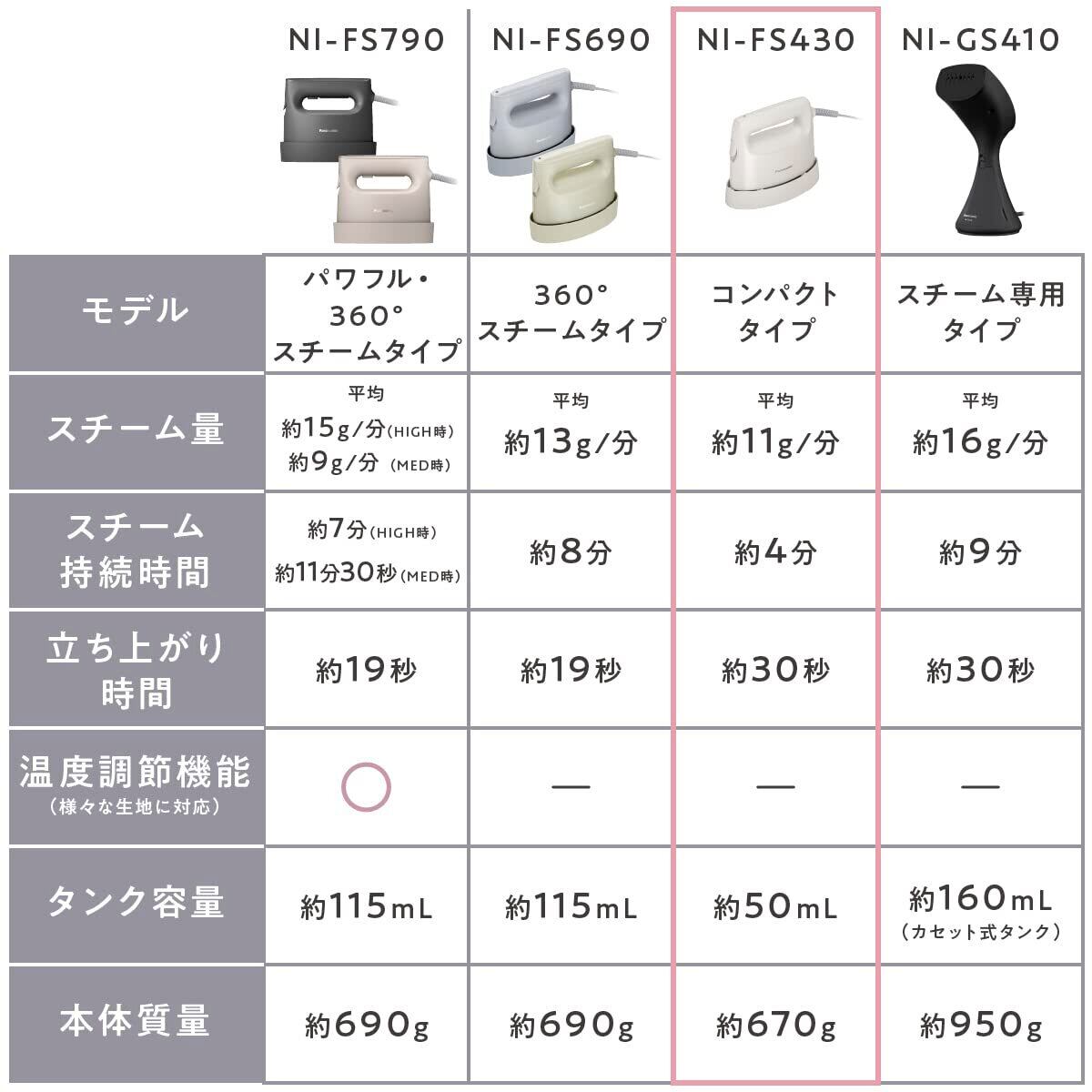【在庫限り】パナソニック 衣類スチーマー パワフルスチーム コンパクト 軽量 プレスもできる2WAY 脱臭 除菌 アイボリー NI-FS430-C