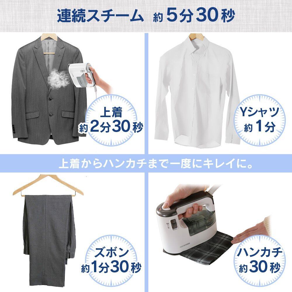 このアイリスオーヤマの衣類スチーマーで、簡単にシワのない美しい衣類を手に入れましょう!特別価格でのご提供中ですので、ぜひこの機会をお見逃しなく!