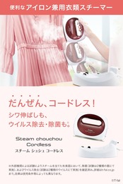 【特長①】コードレスモデル。コードのひっかかりを気にせず、洋服の後ろ側など、スチームをかけたい場所どこでもケアすることができます。
