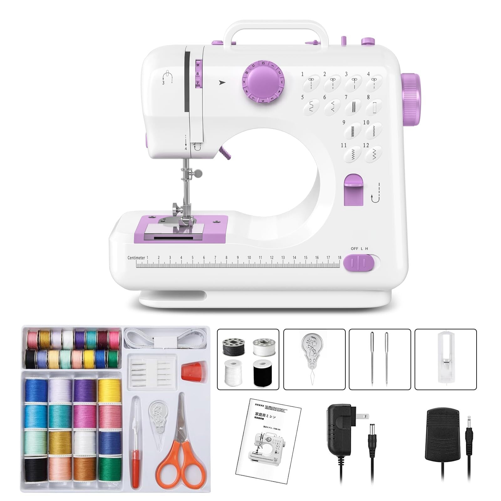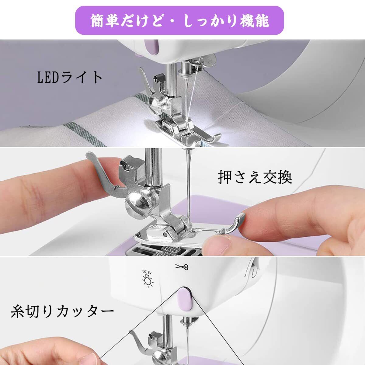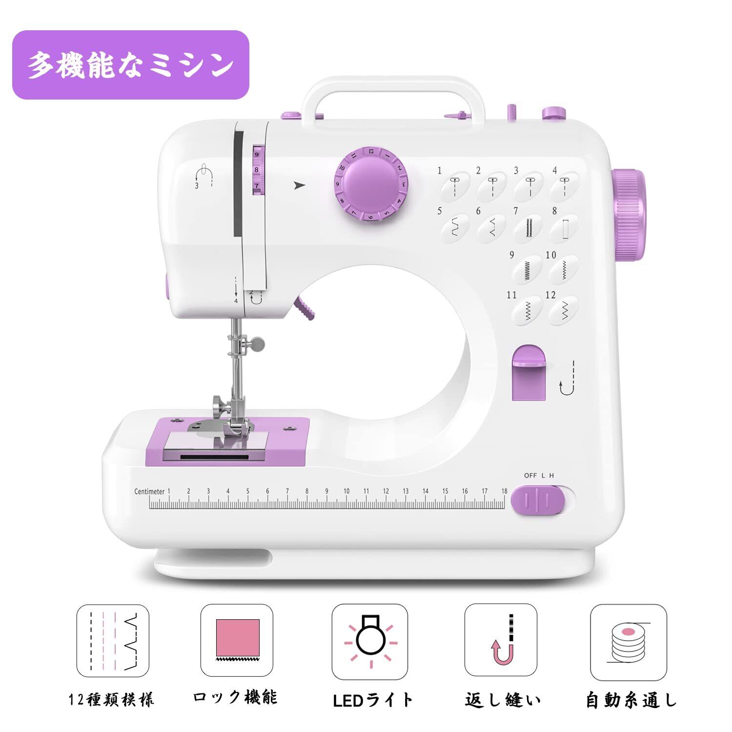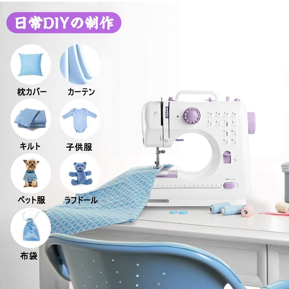 ミシン 初心者向け 電子ミシン 12種類の縫い目 返し縫い機能 2way給電 日常手作り縫製 42PCS裁縫セット付き スピード調整可能 持ち運び便利 日本語説明書付き