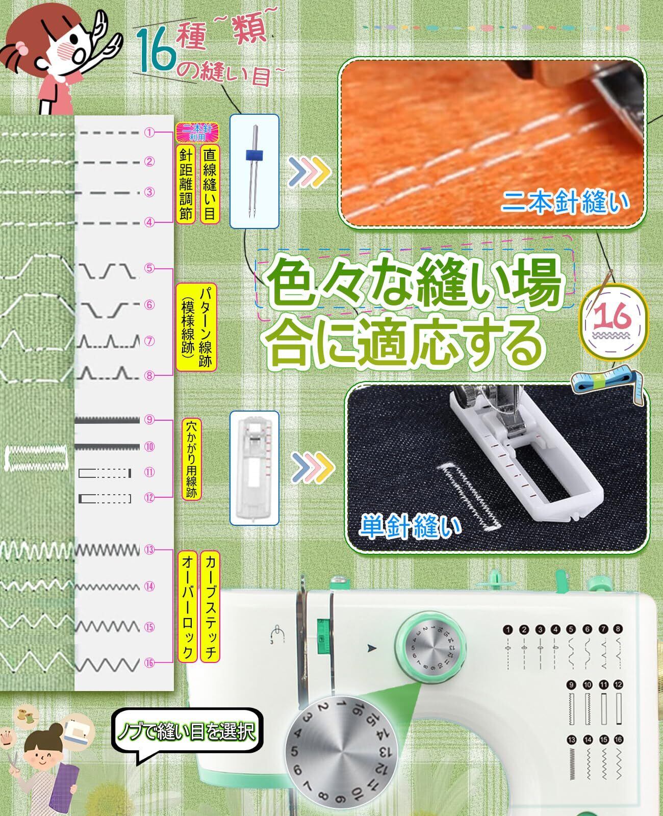 ■【多機能な16種の縫い目を搭載!】このJUNHOTAI電動ミシンは、16種類の縫い目を搭載しており、日常の手作り縫いから趣味の作品まで、多様な用途に対応します。あなたのアイデアを形にするための力強いパートナーです!