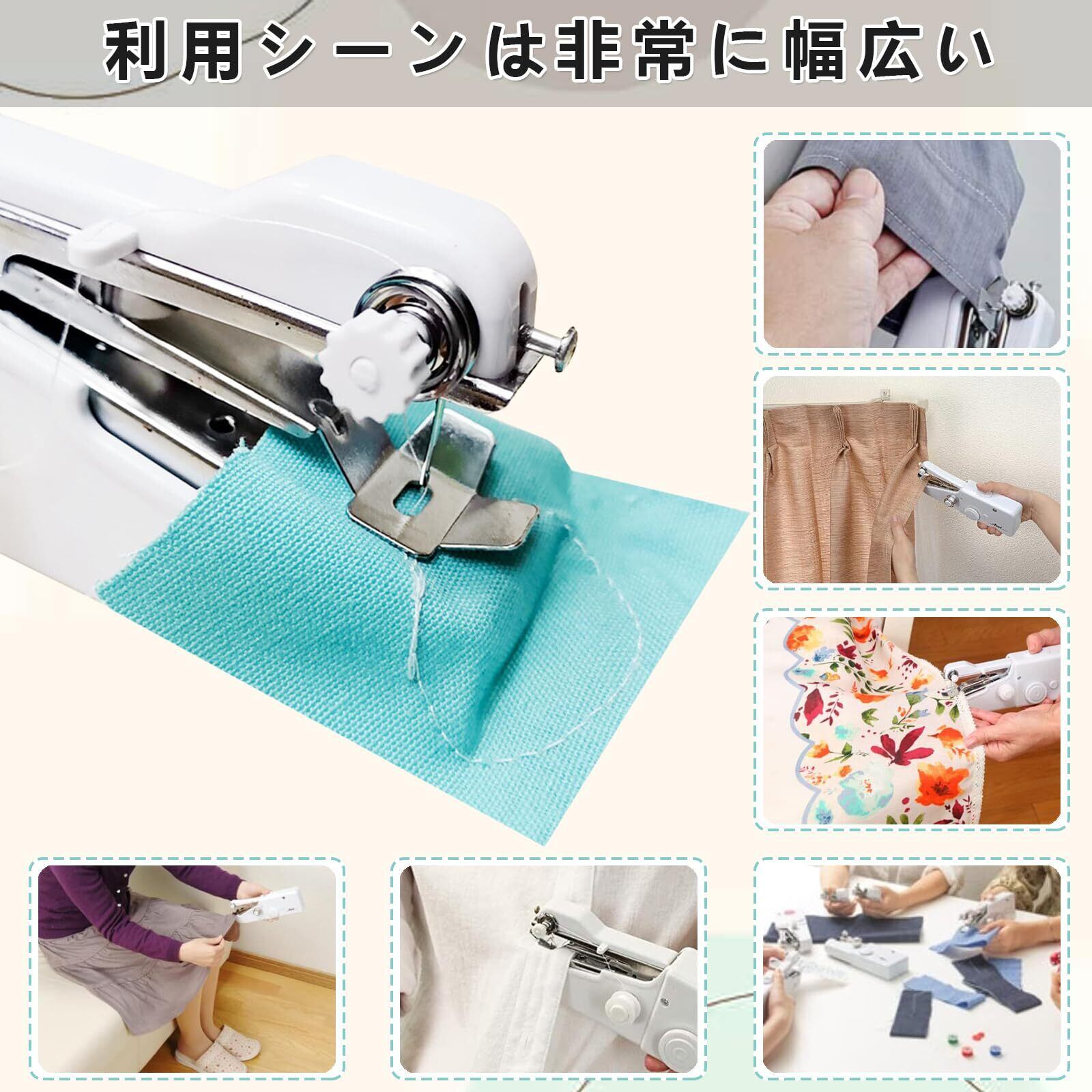 ■【多種生地に対応できる高性能!】このハンドミシンは、様々な種類の生地に対応しており、軽やかな布から厚手のデニムまで、多彩な縫製が可能です。衣類の補修や小物制作に最適です!