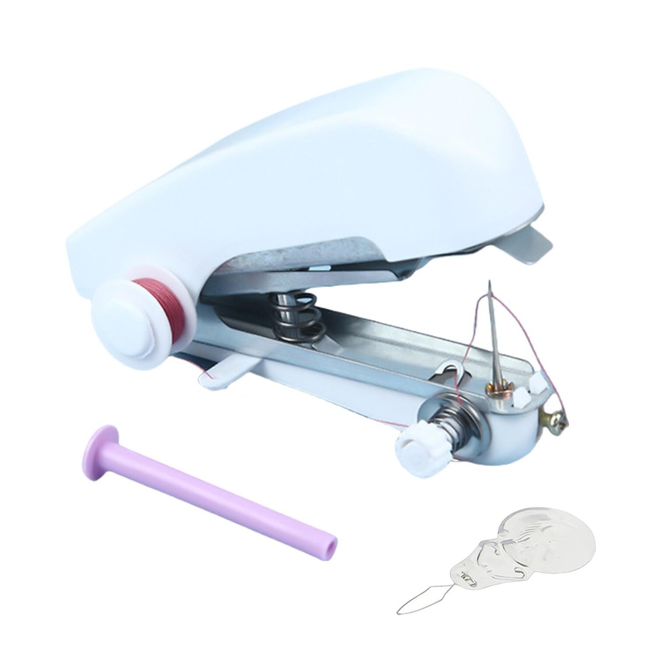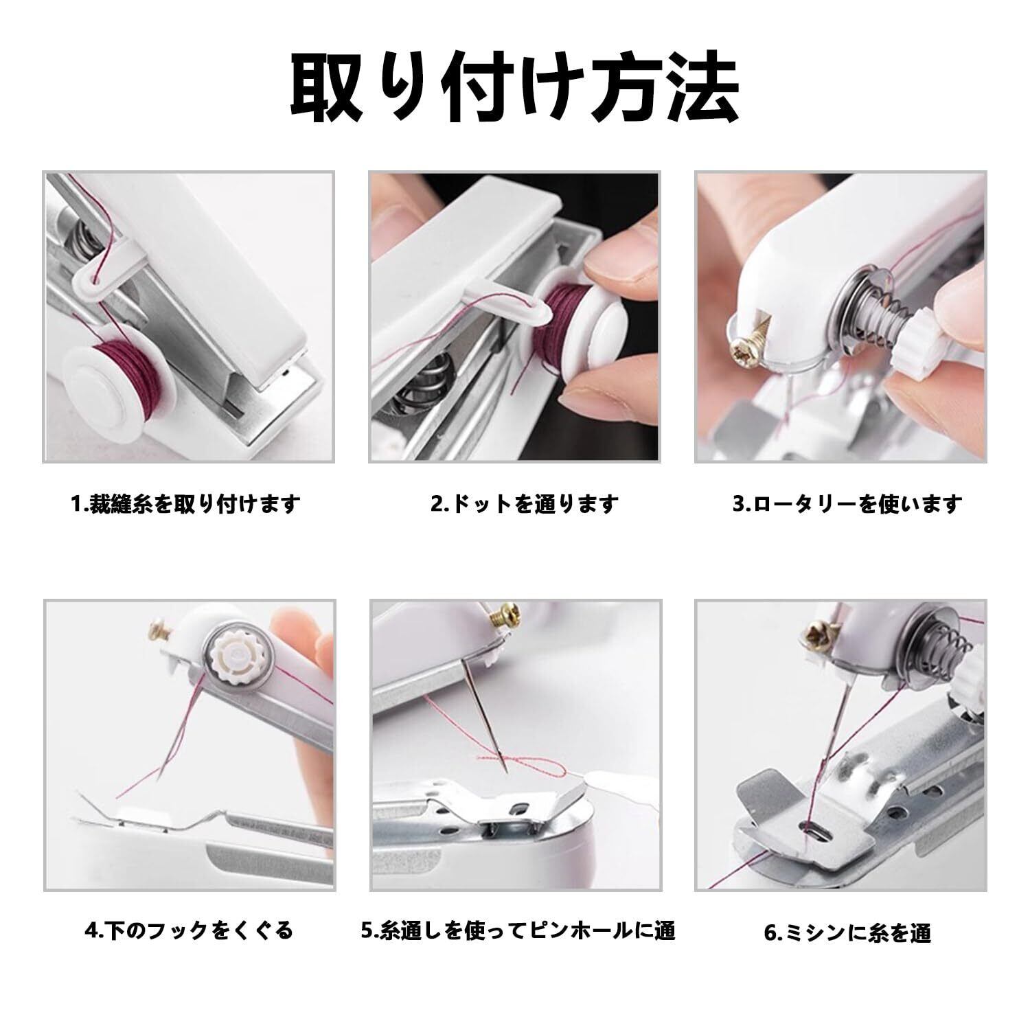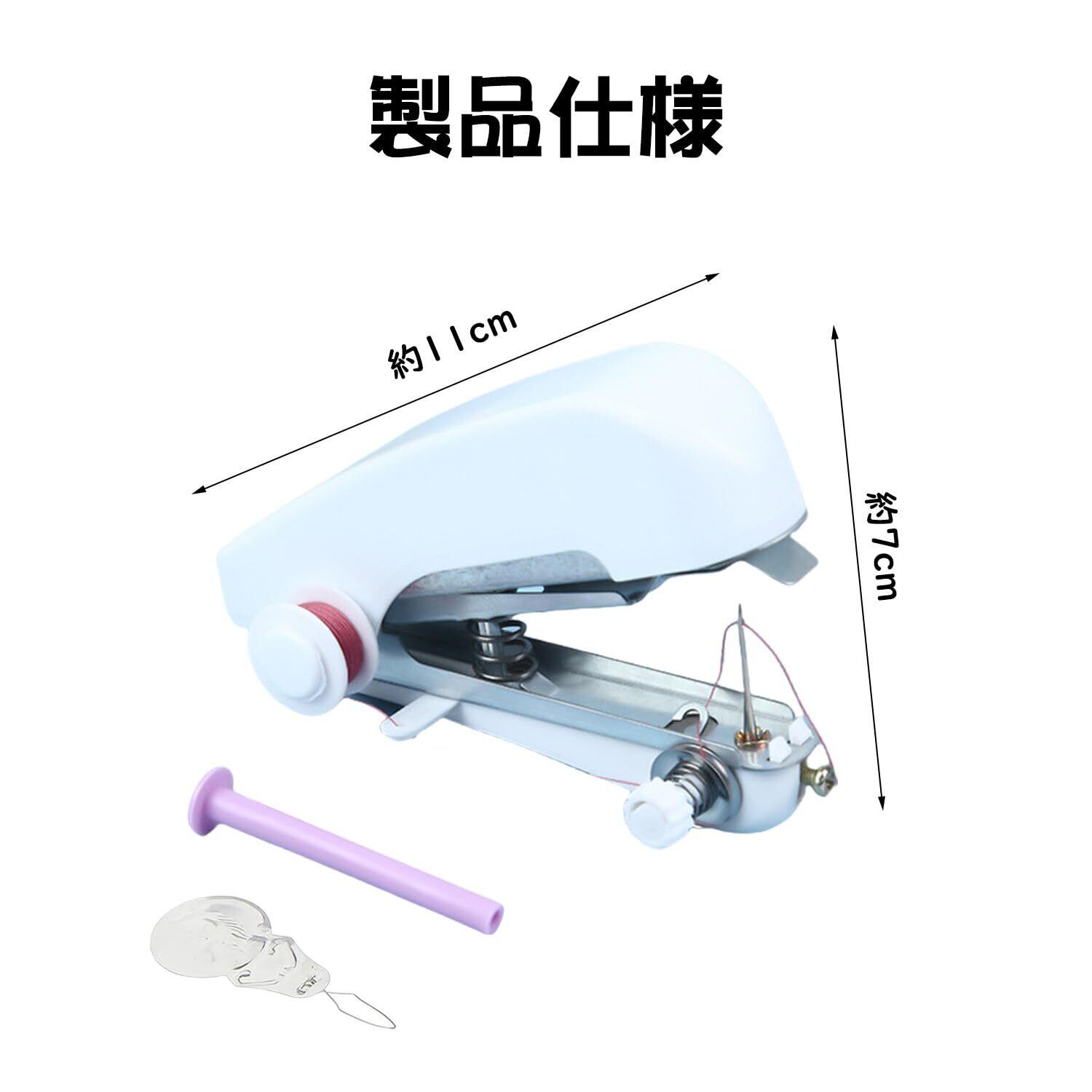 【サイズ・構成とデザイン】サイズ(幅 3× 奥行き 10× 高さ 9cm)のハンドミシン 1 台入り!白モノトーンのデザインで、ハンドバッグにも入るコンパクトさ。本体には白色の縫製糸がプリセットされ、付属品に穿線器と加長糸軸を同梱しており、すぐに縫製作業が始められます。