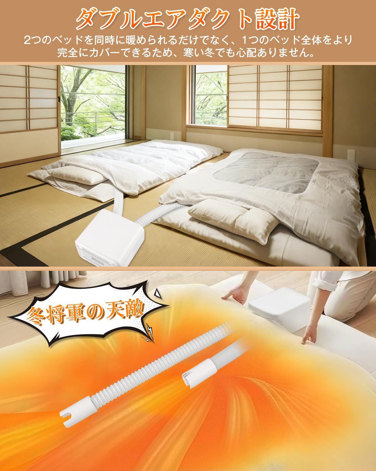 ■【パワフルな乾燥力!】4段階のタイマー機能により、使用目的や季節に応じた乾燥が可能です。強力な温風で寒い冬やジメジメした梅雨の時期でも、布団や衣類を素早く乾かします。ふかふかの布団で、快適な眠りをサポートします。