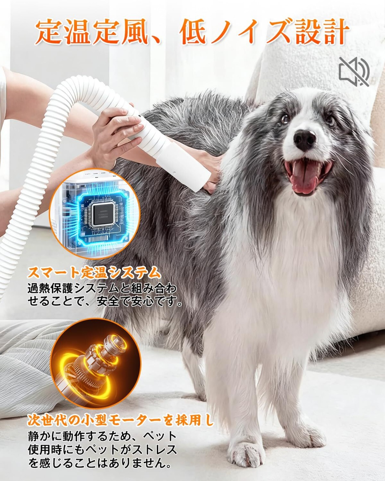 ■【ペット用ドライヤーとしても!】ペットの湿気対策や毛の乾燥にもお使いいただけます。大切なペットにも快適な乾燥環境を提供し、毎日のケアを手軽に行えます。