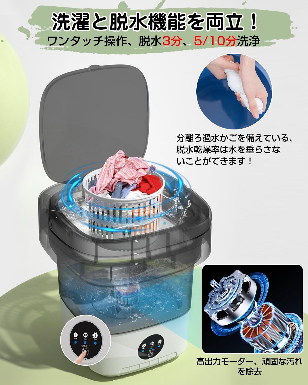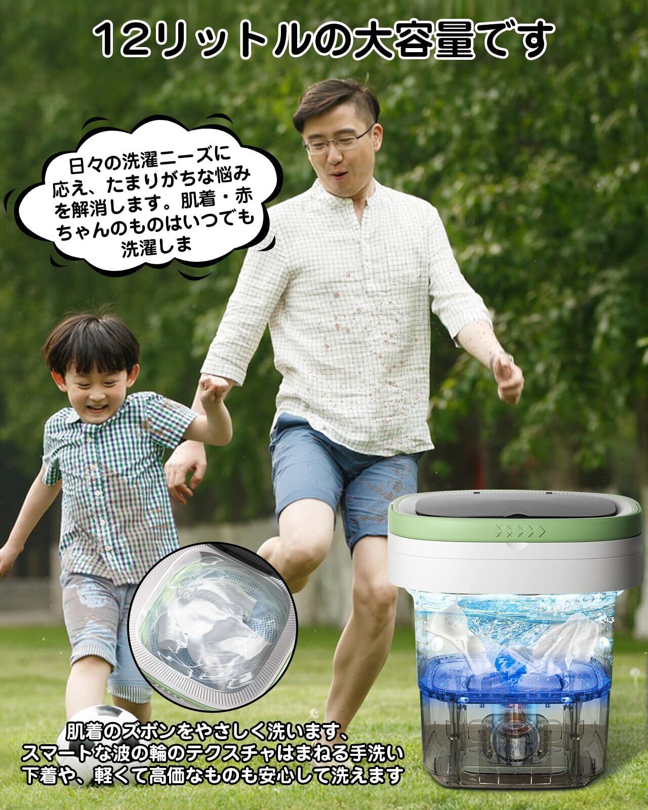 ■【高性能&大容量!】12Lの大容量バケツ式で、複数の衣類をまとめて洗濯可能。3分間の脱水と5/10分の洗浄モードを搭載しているため、短時間で効率的に洗濯を行えます。毎日のルーチンにぴったりです!