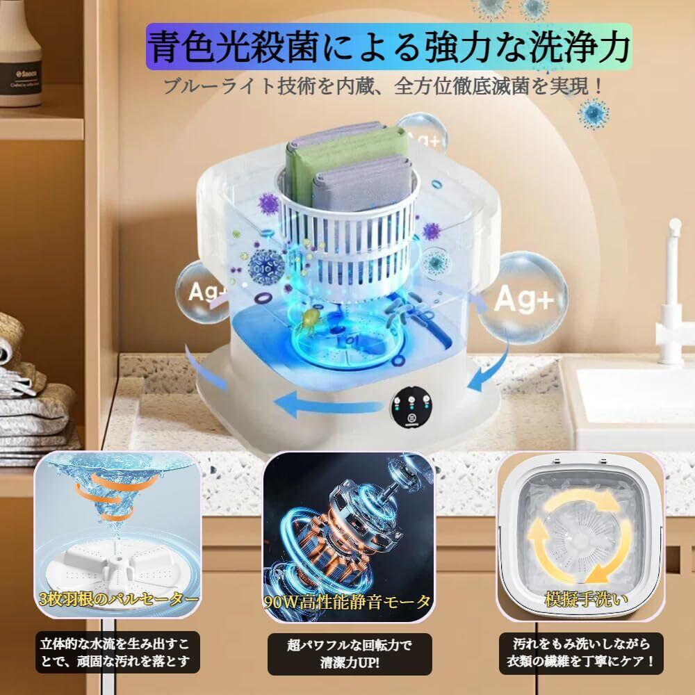【小型・軽量・青色光殺菌消臭】小型洗濯機 折り畳み 12L大容量 90W高性能静音モータ ポータブル洗濯機 小型脱水機 ワンタッチ操作 ミニ バケツウォッシャー 下着 靴下 ベビー服 タオル 急速脱水機能 一人暮らし 寮 アパート 旅行 家庭 (ホワイト・グレー)