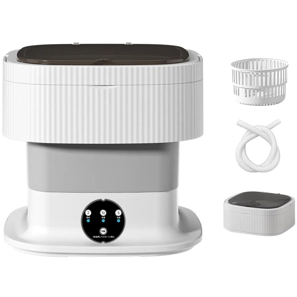 【限定セール】【小型・軽量・青色光殺菌消臭】小型洗濯機 折り畳み 12L大容量 90W高性能静音モータ ポータブル洗濯機 小型脱水機 ワンタッチ操作 ミニ バケツウォッシャー 下着 靴下 ベビー服 タオル 急速脱水機能 一人暮らし 寮 アパート 旅行 家庭 (ホワイト・グレー)