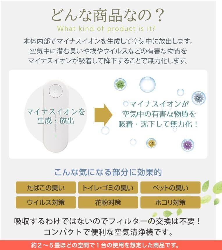 【コンセントに差すだけ!フィルター交換不要】 本製品は面倒なフィルター交換やメンテナンス不要。コンセントに差してボタンを押すだけのシンプル操作。設置場所を選ばず、使いたい場所ですぐ使えます。