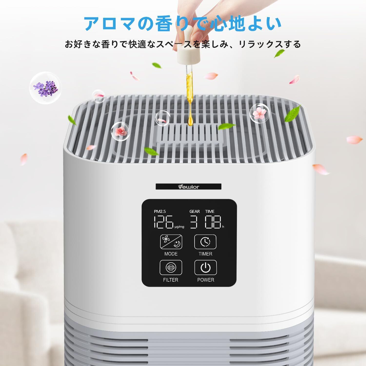 この「VEWIOR空気清浄機」は、健康的な生活空間をサポートするための必需品です。ぜひこの機会にお試しいただき、清々しい空気と快適な生活環境を手に入れてください!皆様のご購入を心よりお待ちしております。
