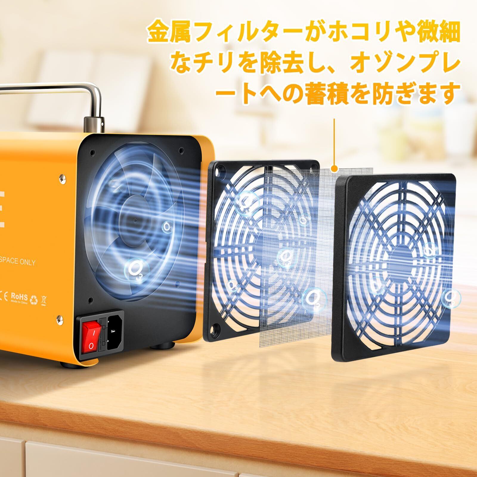 6, / 効率的オゾン発生器:改善されたオゾン空気清浄機は、毎時60,000 mgのオゾンを生成でき、清浄範囲は最大300㎡です。即座に大量のオゾンを生成し、臭いを迅速に除去します。カビ、バイ菌、パラ、フォルムアルデヒドなどのVOCから空間を効果的に脱臭・消毒し、清潔で快適な住環境を提供します。完璧な家庭、寝室、オフィス、ホテル、レストラン、車などに最適です。