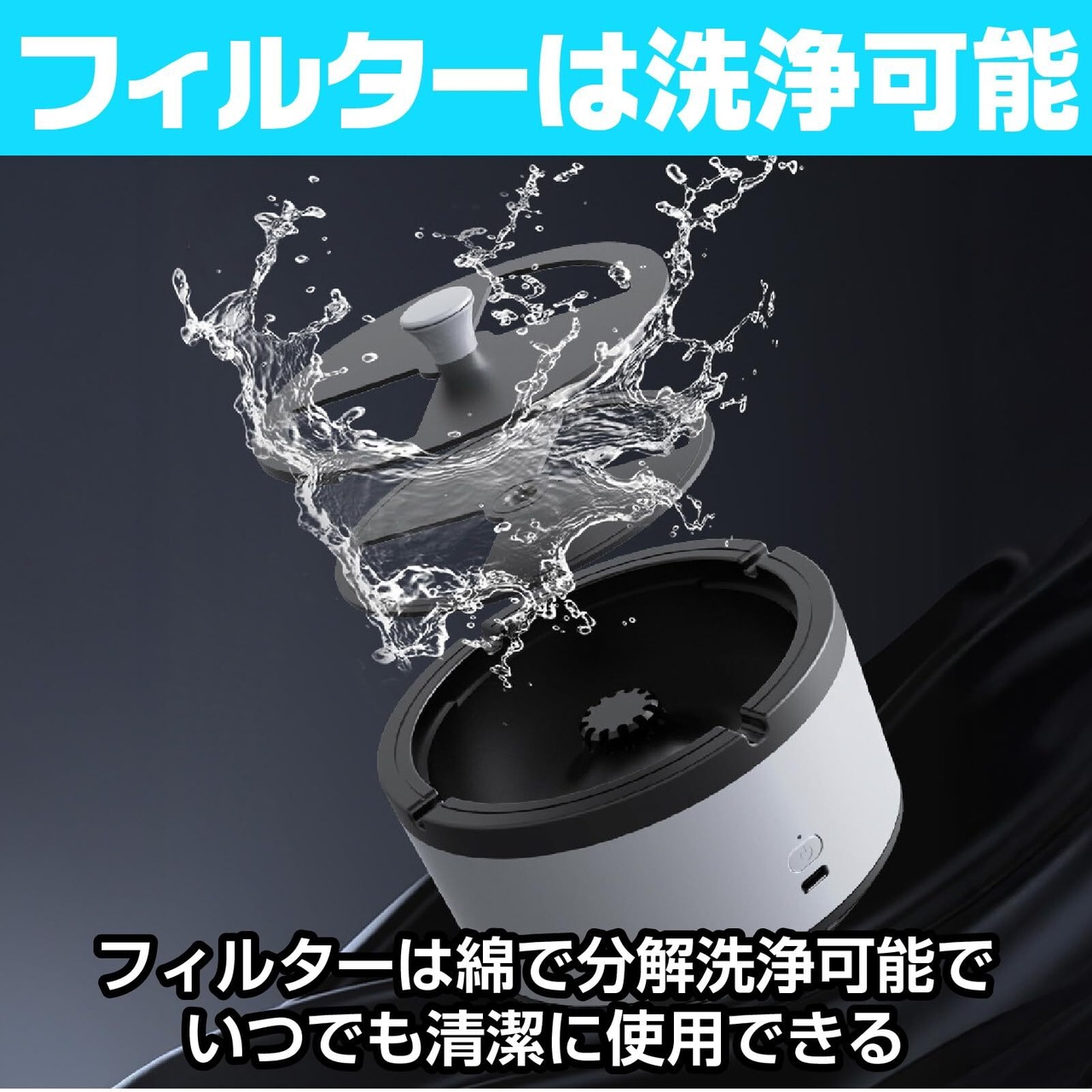 ■【USB充電式でどこでも使える】この灰皿はUSB充電式ですので、コンセントがない場所でも手軽に使用可能。充電後は長時間稼働し、便利さを追求した設計になっています。携帯性もあり、どこでも手軽に持ち運びできます。