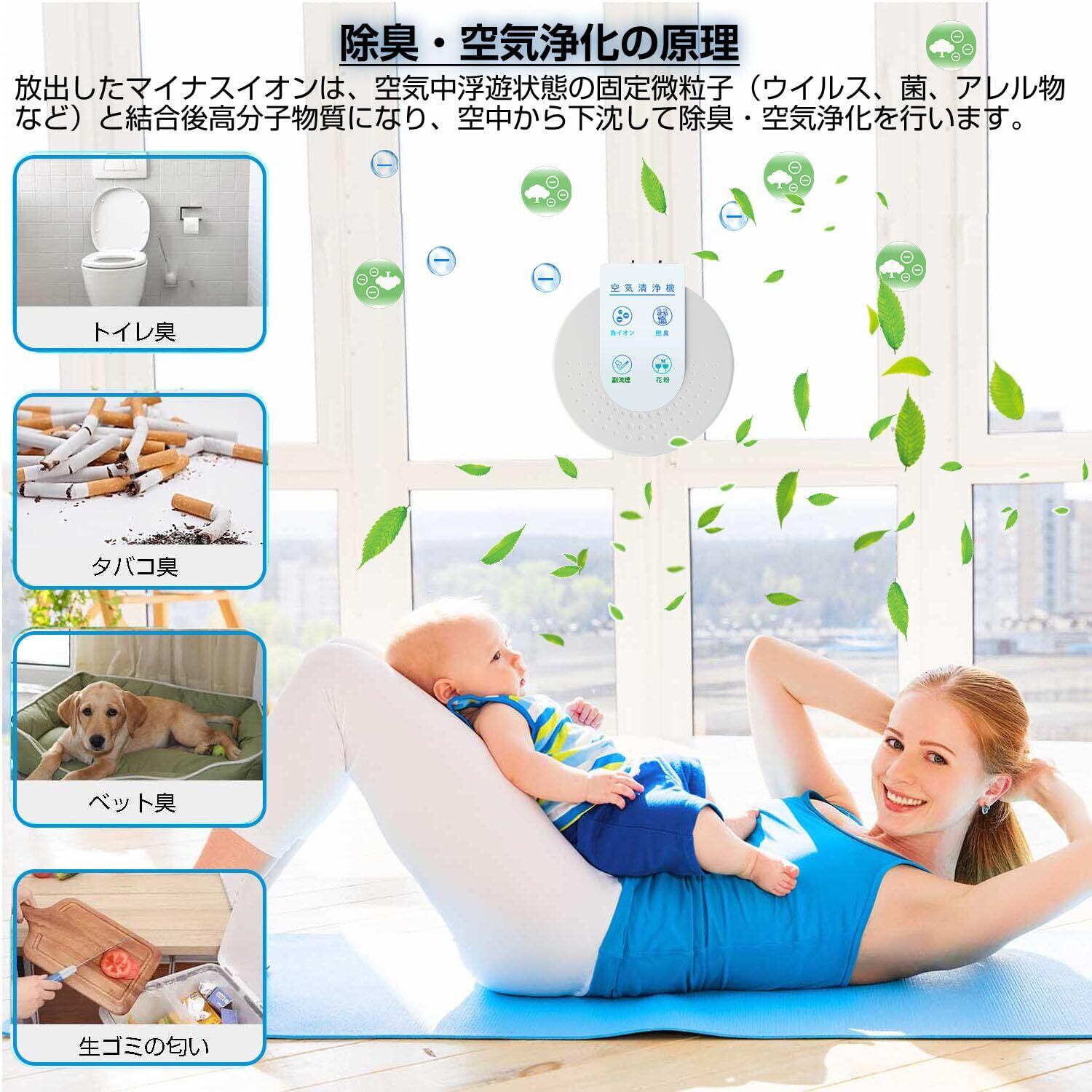 発注する時に必ず販売元确认:FAHTENA.JAPANをご利用ください。他社の製品は品質できませんので、ご注意ください。高濃度でイオンを放出し、お部屋に漂う嫌なニオイの消臭やニオイの元となるニオイ原因菌まで除菌します。有人空間での使用はお勧めできないオゾン脱臭機と違い、イオンの力で安心空間を創出します。持続する確かな脱臭性能で、家の中の気になる「排せつ物臭」や「ペット臭」など多種類の頑固なニオイ脱臭します。特にペットのいるご家庭、タバコの臭い対策などにおすすめいたします。ご注意:短時間で強力脱臭とはいきませんが、安定した脱臭を行ってくれます。ただし、ニオイ元の近くで使用するなどの工夫が必要です。