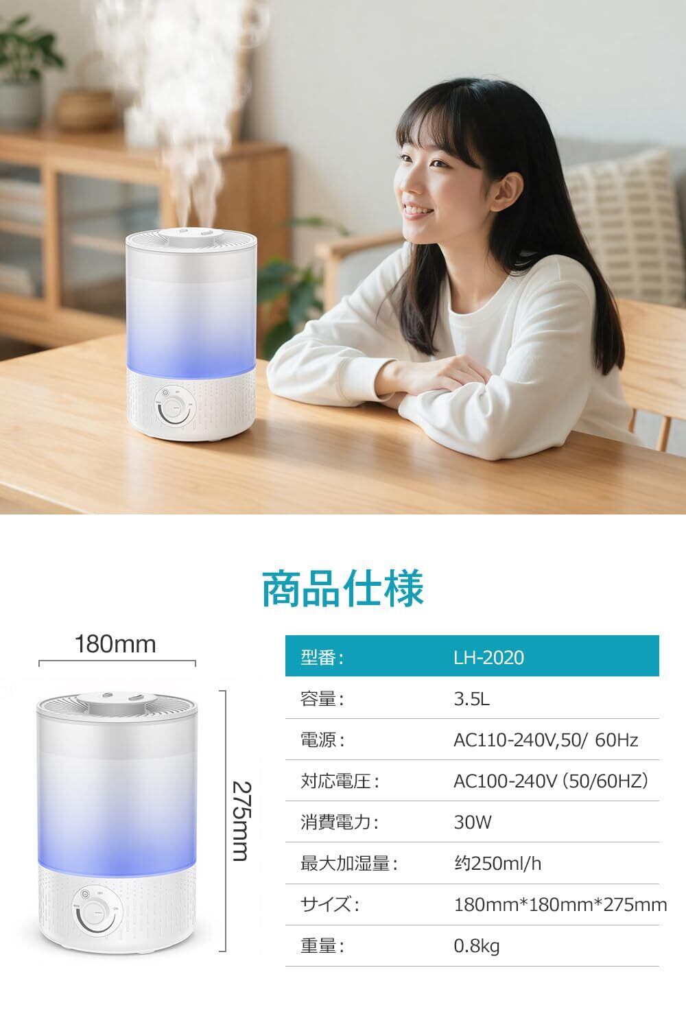 【限定セール】【2025年改良モデル・UVライト除菌】加湿器 大容量 3.5L 超音波式 卓上 おしゃれ アロマ対応 ダブル吹出口 上から注水 無階段ミスト調整 静音 54時間連続作動 吹出口360°調整 空焚き防止 水漏れ防止 寝室/オフィス/会社/家庭用 次亜塩素酸水対応 乾燥対策/花粉症対策 PSE認証済み