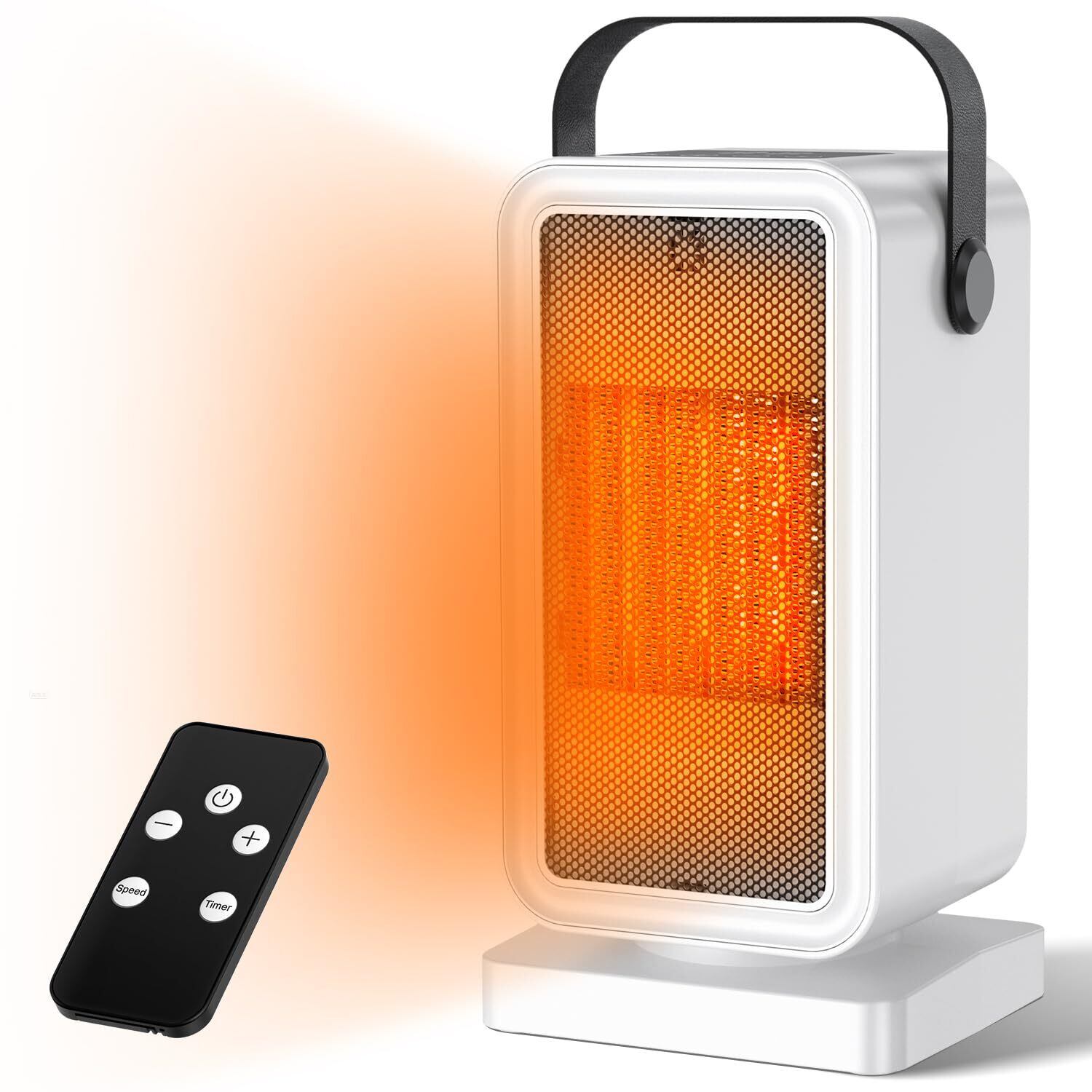 BOTISONE セラミックヒーター 小型 【2025冬新登場 2秒瞬暖 ECO知能恒温&節電対策】PTC セラミックファンヒーター 15-35℃恒温 2段階温風切替 1-12Hタイマー機能 リモコン付き マイナスイオン 55℃で安全自動停止&OFF-30秒送風散熱機能&二重過熱保護&V0級難燃ボディ コンパクト軽量 暖房器具 10畳 足元 寝室 トイレ 引越し祝い 日本語取扱説明書 ホワイト