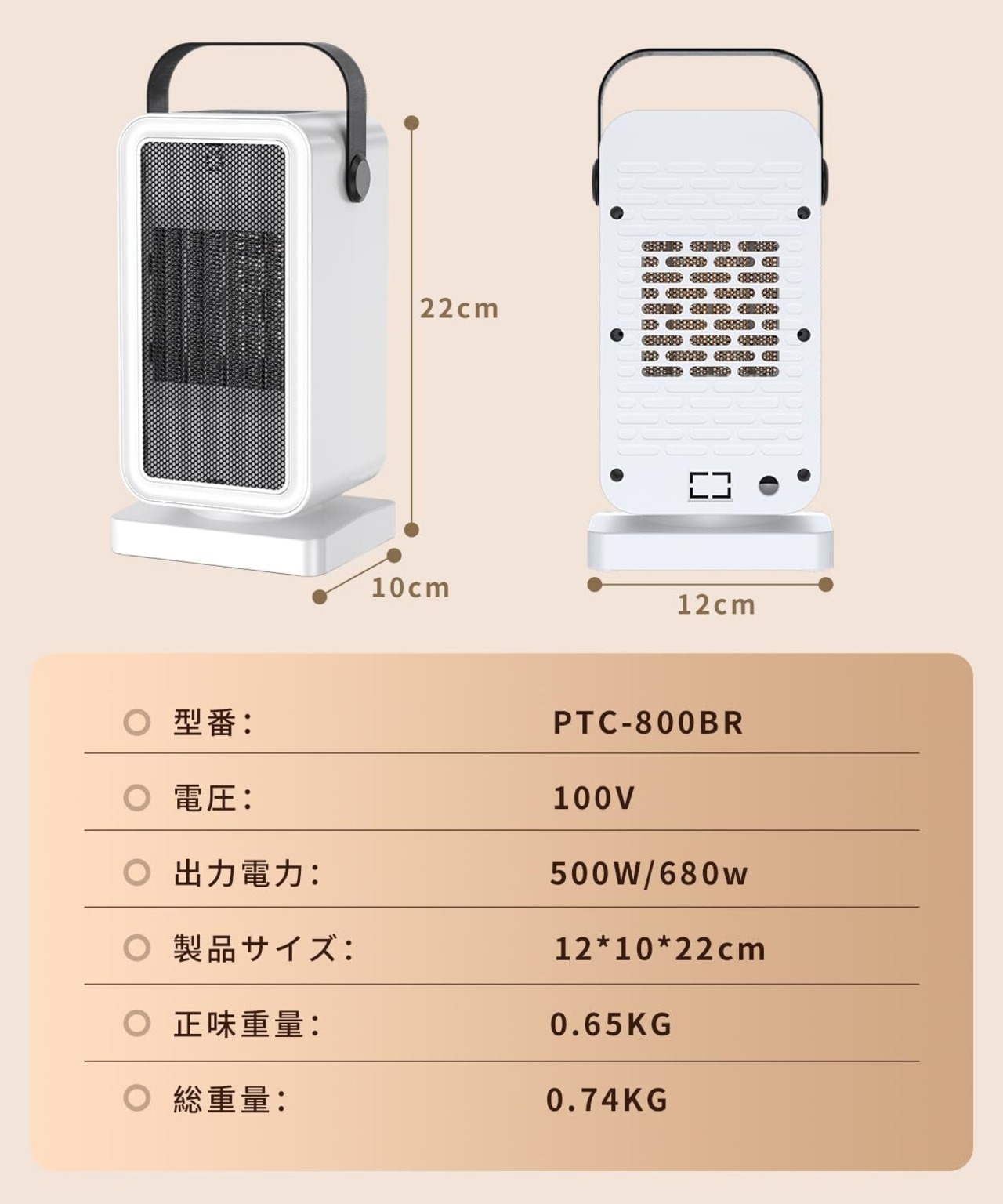 多様なシーンで活躍・コンパクト|冬の贈り物 この セラミックヒーター 小型 はコンパクトなデザインで、場所を取らず、重量はわずか0.65kgと軽量で、持ち運びに大変便利です。リビングや寝室はもちろん、オフィス、キッチン、浴室など様々なシーンで、素早く温かさをお届けします。付属の持ち手付きにより、女性でもいつでも セラミックファンヒーター を異なる場所へ簡単に移動でき、多様な使用ニーズに柔軟に対応します。冬の贈り物として、ご家族や友人へ实用性と心くばりを届けるのにぴったりです。