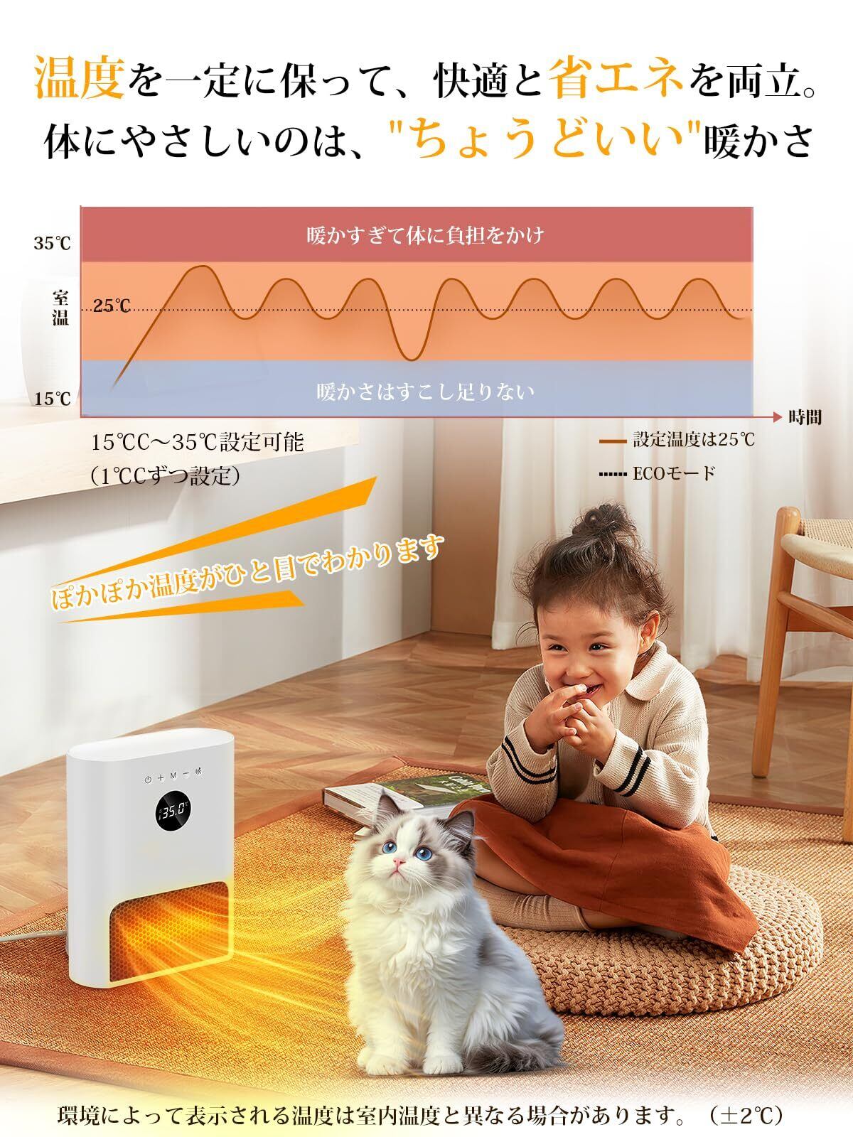 ■【2秒で暖かさを実感!ECOモードで省エネ】最新のPTC加熱技術を使用しており、電源ONからわずか2秒で温風が吹き出します。ECOモードを利用することで、電力を抑えながら快適な温度を維持。電気代を気にせずに、心地よい温もりを楽しめます。