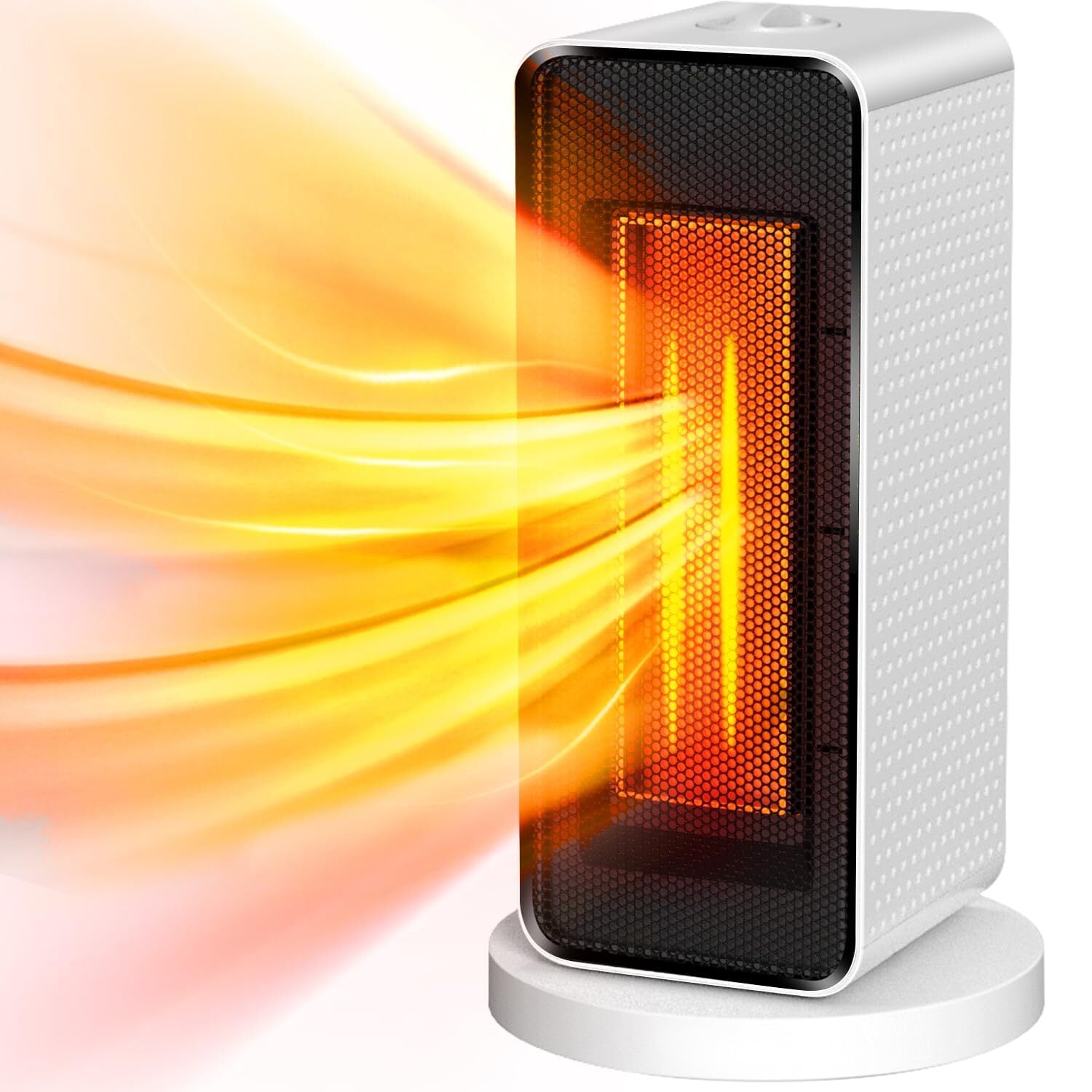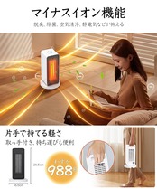 ① セラミックヒーター 小型 速暖 & 強力暖房 わずか数秒で温風を送り出す セラミックファンヒーター 暖房。最大1200Wのハイパワーで、足元からお部屋全体まで効率的に温めます。 足元ヒーター や デスク下ヒーター として、一人暮らしやワンルームなど限られたスペースに最適。冬の寒さ対策に欠かせない 省エネ 暖房器具 です。