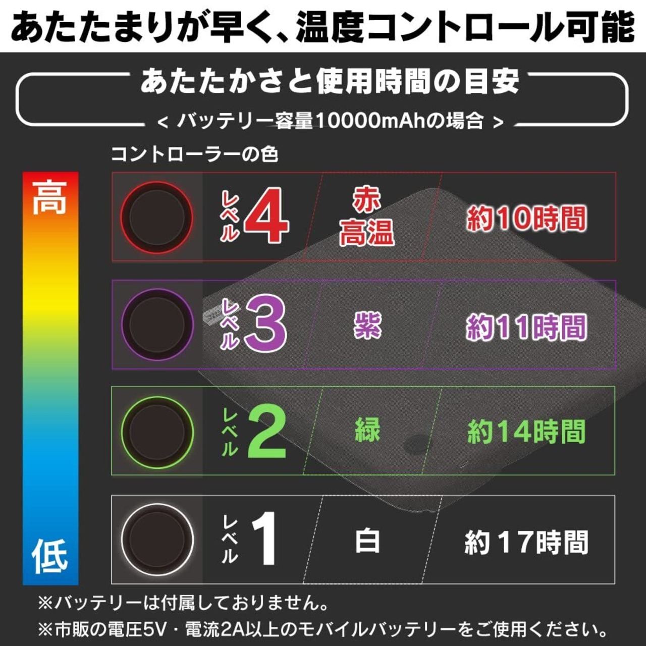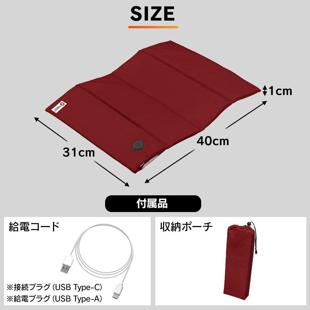 素材:[本体]ポリエステル100%[クッション材]発泡ポリエチレン / 入力電圧/電流:5V/2A / 待機/消費電力:0.7/10W / 給電ケーブル:[コード長さ]約1000mm[入力ポート]USB Type-A/USB Type-C / コントローラー(温度調節):4段階