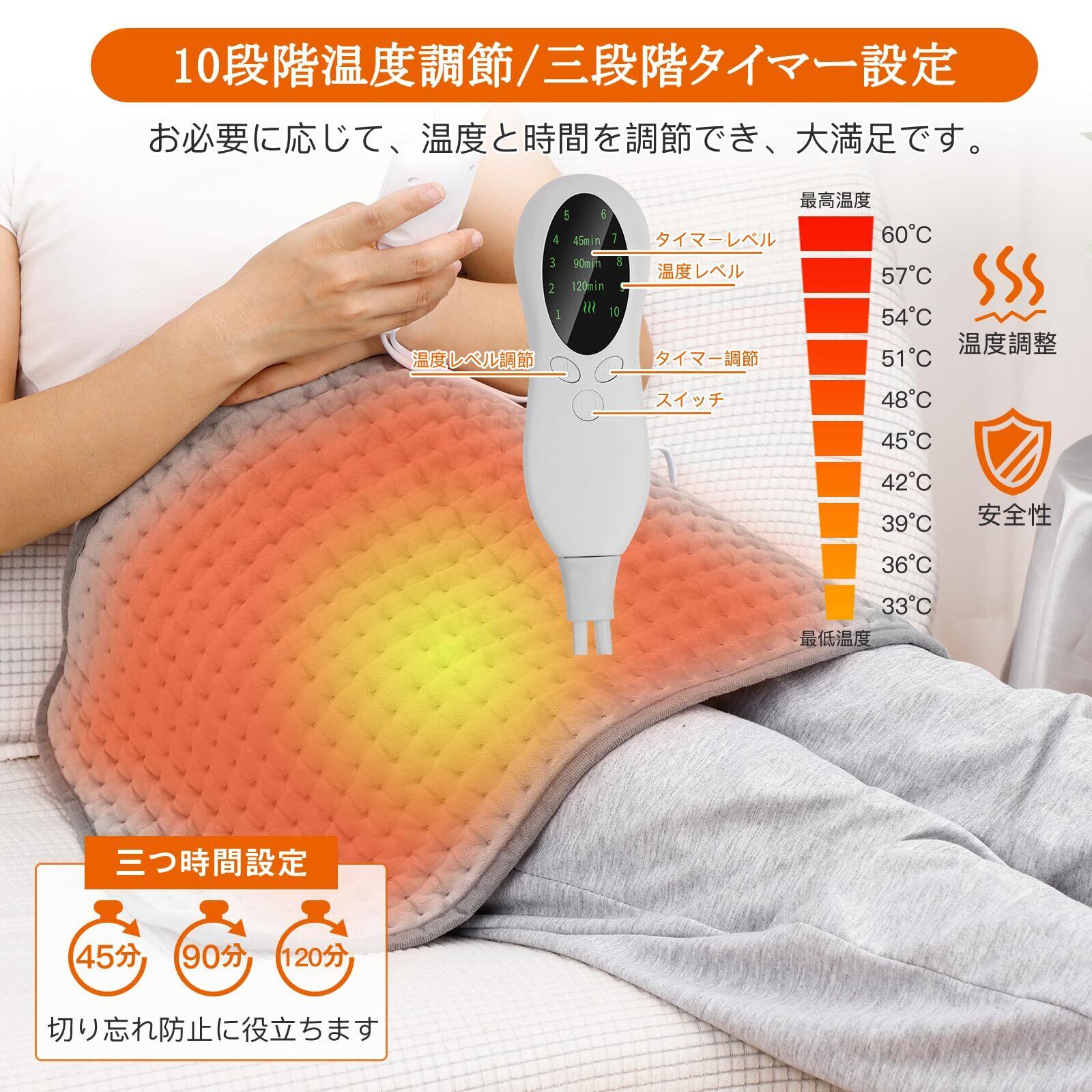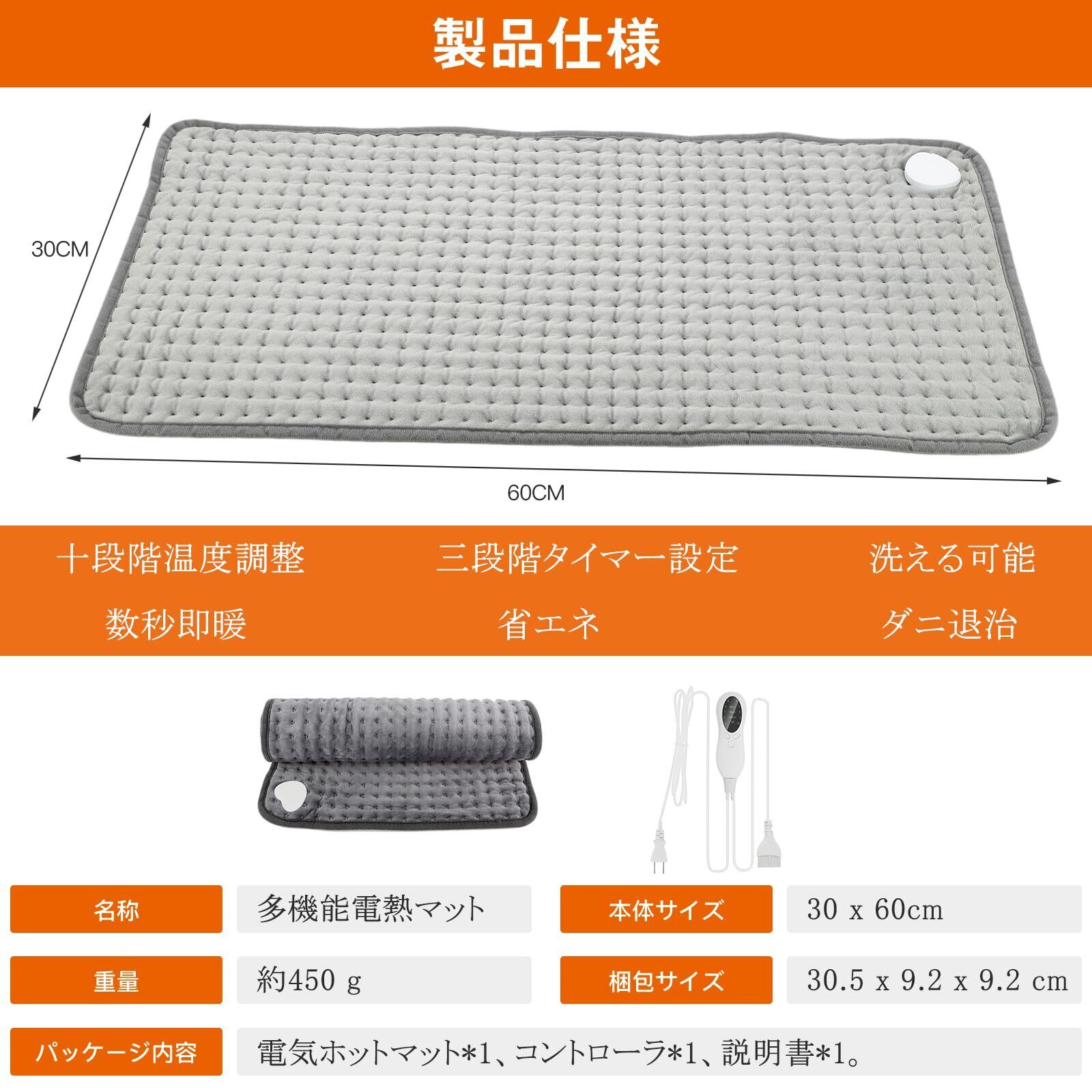 DEWEL ホットマット 電気マット 10段階温度調節 タイマー機能付き 過熱保護 30*60cm 電気カーペット 電熱マット 速暖 防寒対策 ひざ掛け/肩掛け/足掛け 省エネ 丸洗い可能 在宅勤務 オフィス PSE認証済