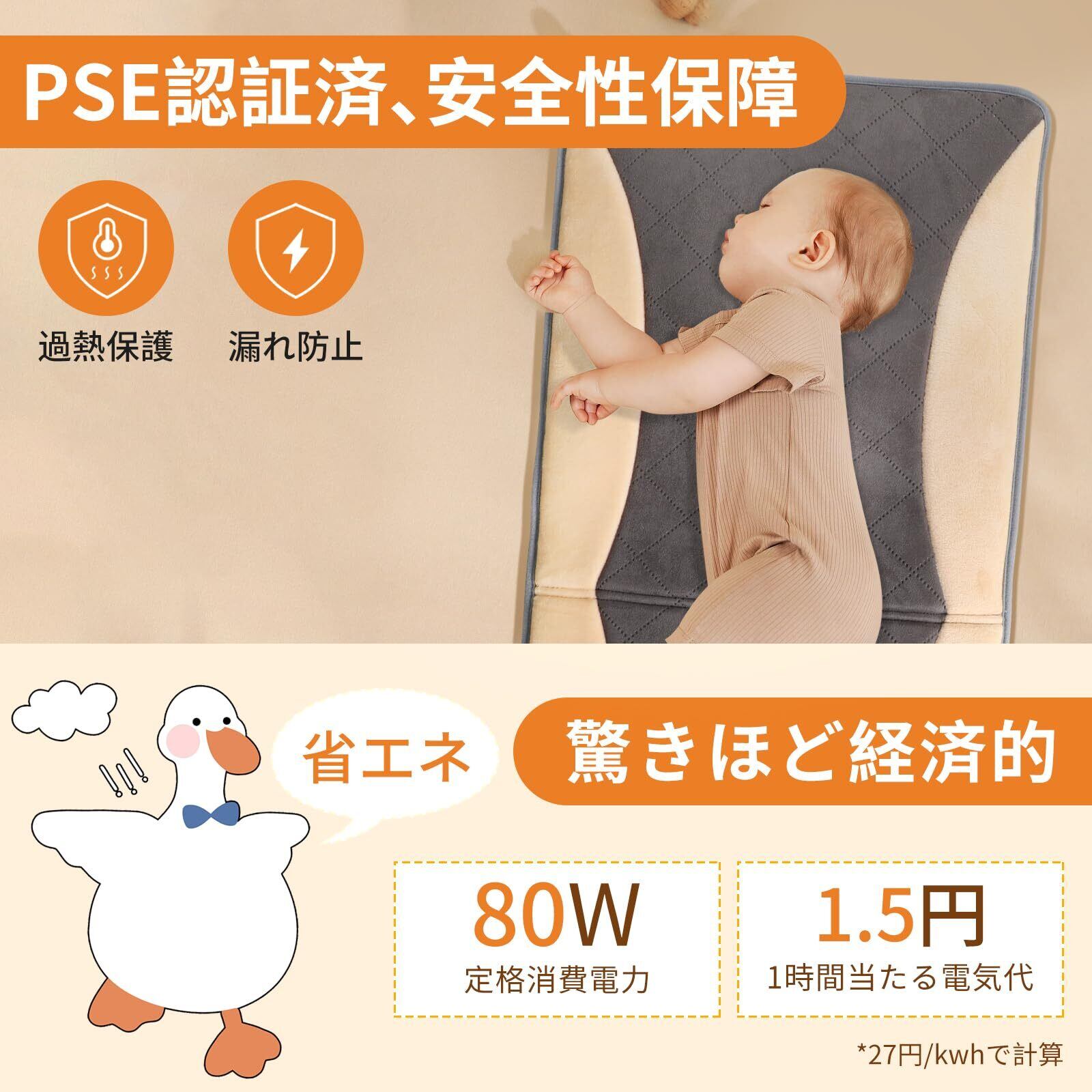 【3段階タイマー設定、自動電源オフ】安全タイマー機能が付きの電気ホットマット、運転時間は2時間・4時間・8時間の3段階で設定でき、設定した時間後に電源が自動的にオフできます。寝る前にタイマーを設定することにより、エネルギーを節約できますし、電源を切り忘れても心配が必要ありません。