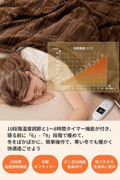 【タイマー機能で、温もりは一時的なものではない】■1時間から8時間まで、タイマーはあなたの好みに合わせて調節可能。時間の流れに寄り添い、それはのんびりとした午後の1時間か、読書の至福の2時間か、あるいは長い夢の中の8時間かもしれない。タイマー機能の知恵が加わり、温かさと時の流れが調和し、あなたの生活に心温まる思いやりを添える。■②もう寝過ごしたり、電源を切り忘れたりすることを心配しなくていい。お年寄りや子供たちの使用時の安全も不安ではない。タイマー機能が生活に溶け込み、生活をゆったりとしたものにし、家族とのほっこりとした時間を満喫できる
