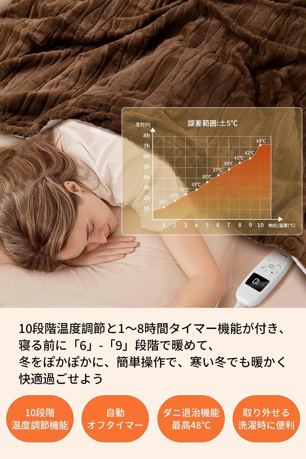 ■【10段階温度調節で自分好みの温かさを】温度設定は10段階から選べるので、寒さに応じた最適な温度を見つけることができます。すぐに温まりたい時でも、自分の体感に合わせたぬくもりが楽しめるのがこの電気毛布のポイント!