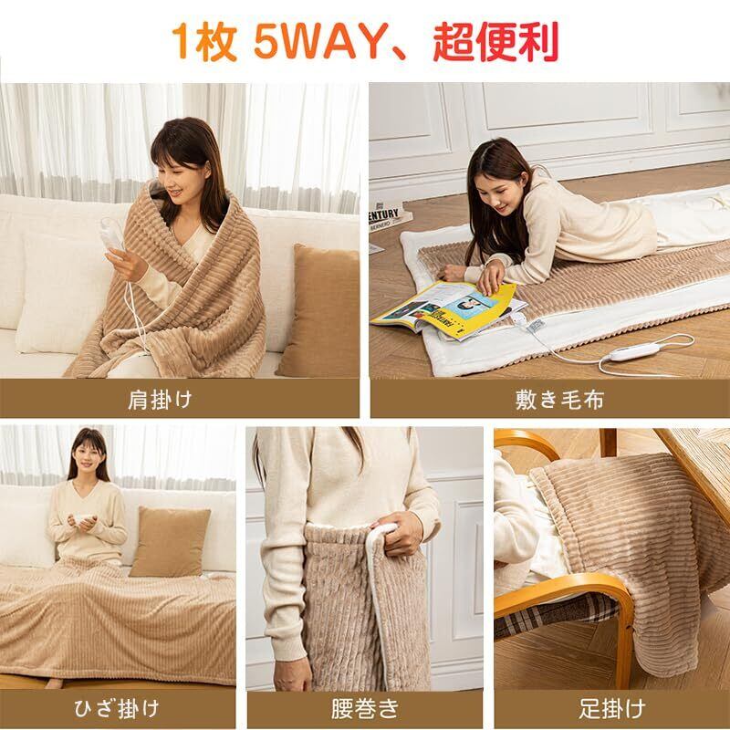 ■【多機能デザインで一年中快適】この電気毛布は、120×60cmのサイズで掛け毛布、敷き毛布、ひざ掛け、肩掛けとして幅広く使える便利なアイテムです。寒い冬の日にはもちろん、冷房の効いた夏場にも重宝します。与える温もりを通じて、リラックスタイムを存分に楽しむことができます!