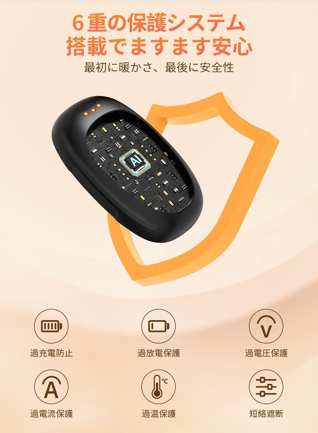 「安全性設計・安心して使える」抜群な柔軟性と耐衝撃性を備えたABS材質、熱伝導率と熱放散性能が付いているアルミ合金素材、耐高温PCの三つ優れた安全性と耐久性の素材を利用する同時に、心強い多重保護システムも付いている充電カイロです。放電、過熱、過電圧、過電流、過負荷、短絡などのリスクに防ぎ、安全性が向上させています。安全性が充分に考慮して長期間で安心にご利用いただけます。
