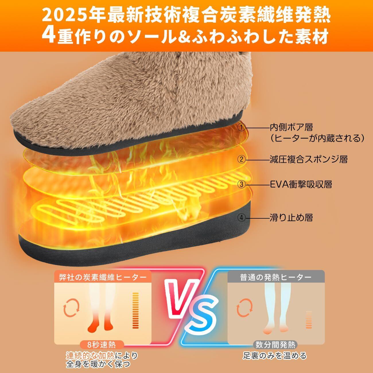 電気スリッパ 足温器 【8秒で速暖】 フットウォーマー (6000mAh)*2個 バッテリー付き コードレス 日本製ヒーター 自由に歩ける 足元 あったかグッズ NTC過熱保護 ドローコード付き 加熱スリッパ 3段階温度調節 8時間使用可能 1.5m延長コード付き 省エネ 柔らかい 滑り止め 洗濯可能 男女兼用 (M(22.5-25.5cm), ライトブラウン)