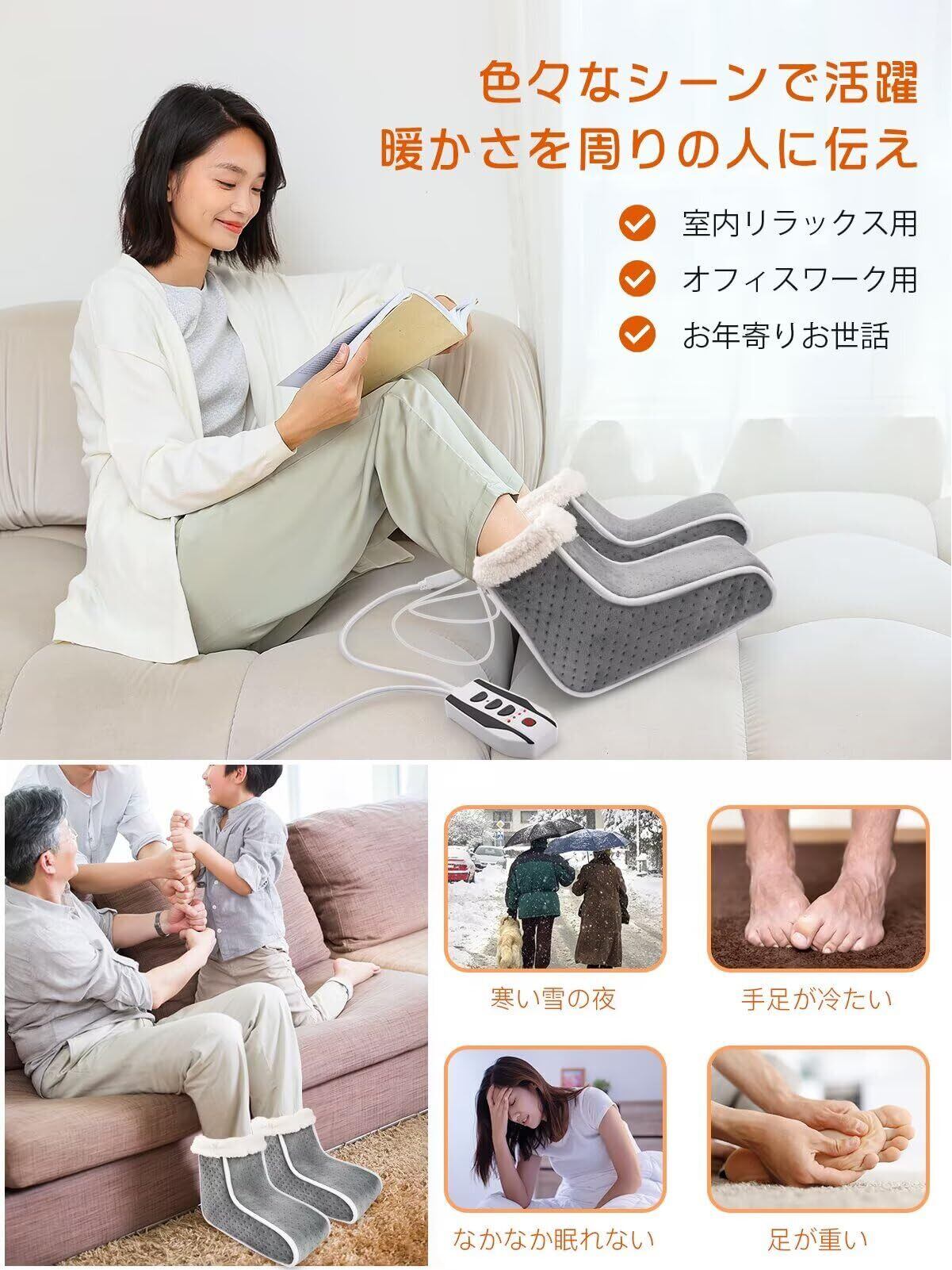 柔らかい生地&取り外し可能なカバー 保温性と清潔さを保つ - 高級マイクロファイバー生地を採用し、肌触りが優れており、保温性を持ちながらも耐久性にも優れたフットウォーマーです。取り外し可能なフットカバーは手洗いが可能であり、常に清潔さを保つことができます。ブーツ型のデザインにより、ふくらはぎまでしっかりカバーし、足先から全身に温かさを伝えます。自宅やオフィスでの使用に最適で、ソファに座りながらも簡単に足を温めることができます。手足の冷えに悩む方にとっては欠かせない暖かい足温器です。大切な人への贈り物としてもおすすめです。