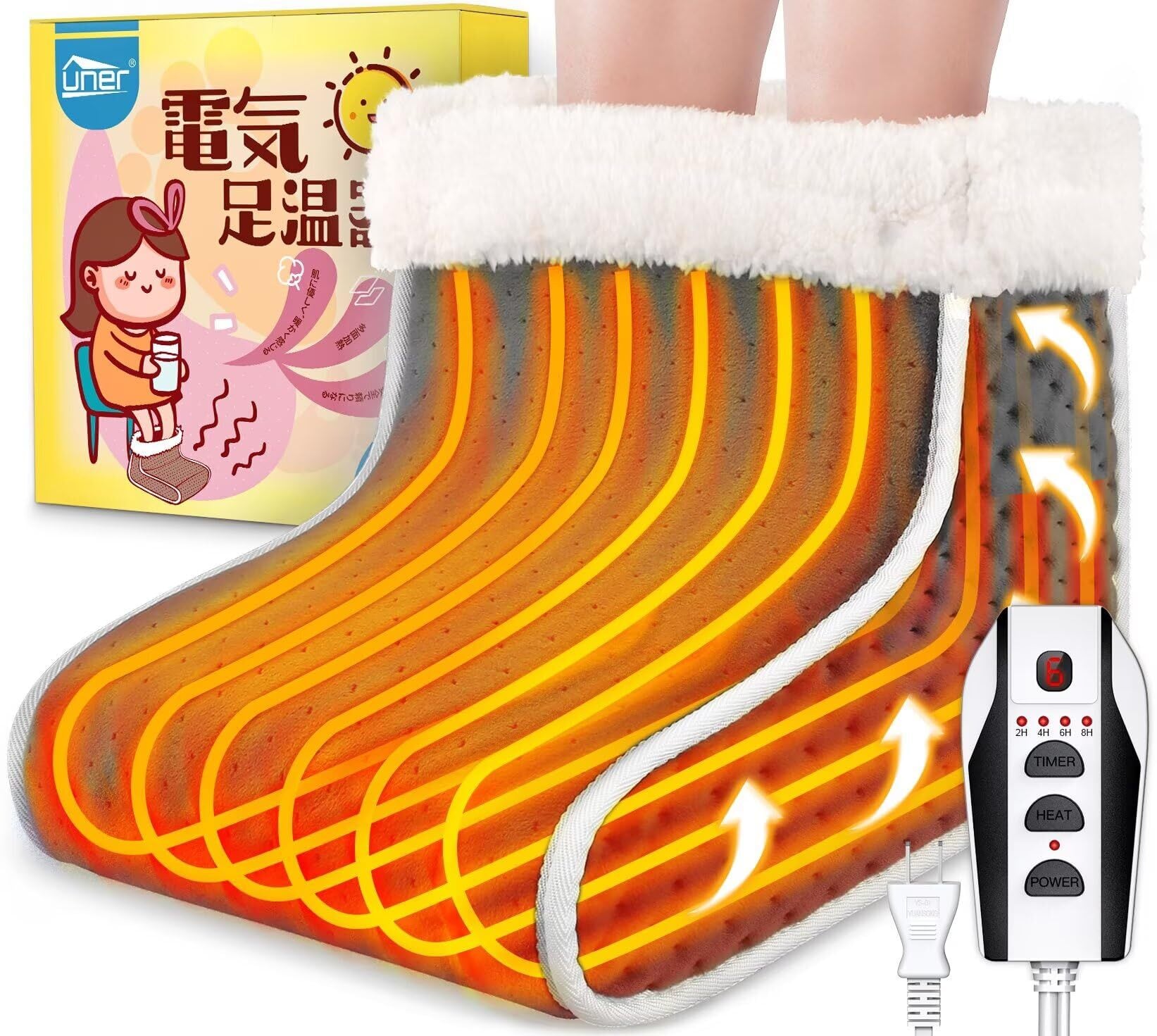 【新着商品】Uner®【看護師監修】 足温器 フットウォーマー 足元ヒーター コンセント式 6段階温度調節 タイマー付き 省エネ 電気足入れヒーター 過熱防止機能 速暖 冷え症対策 フットヒーター 洗濯可能 男女兼用 家庭用 オフィス 寮用 PSE認証済 省エネ (L)