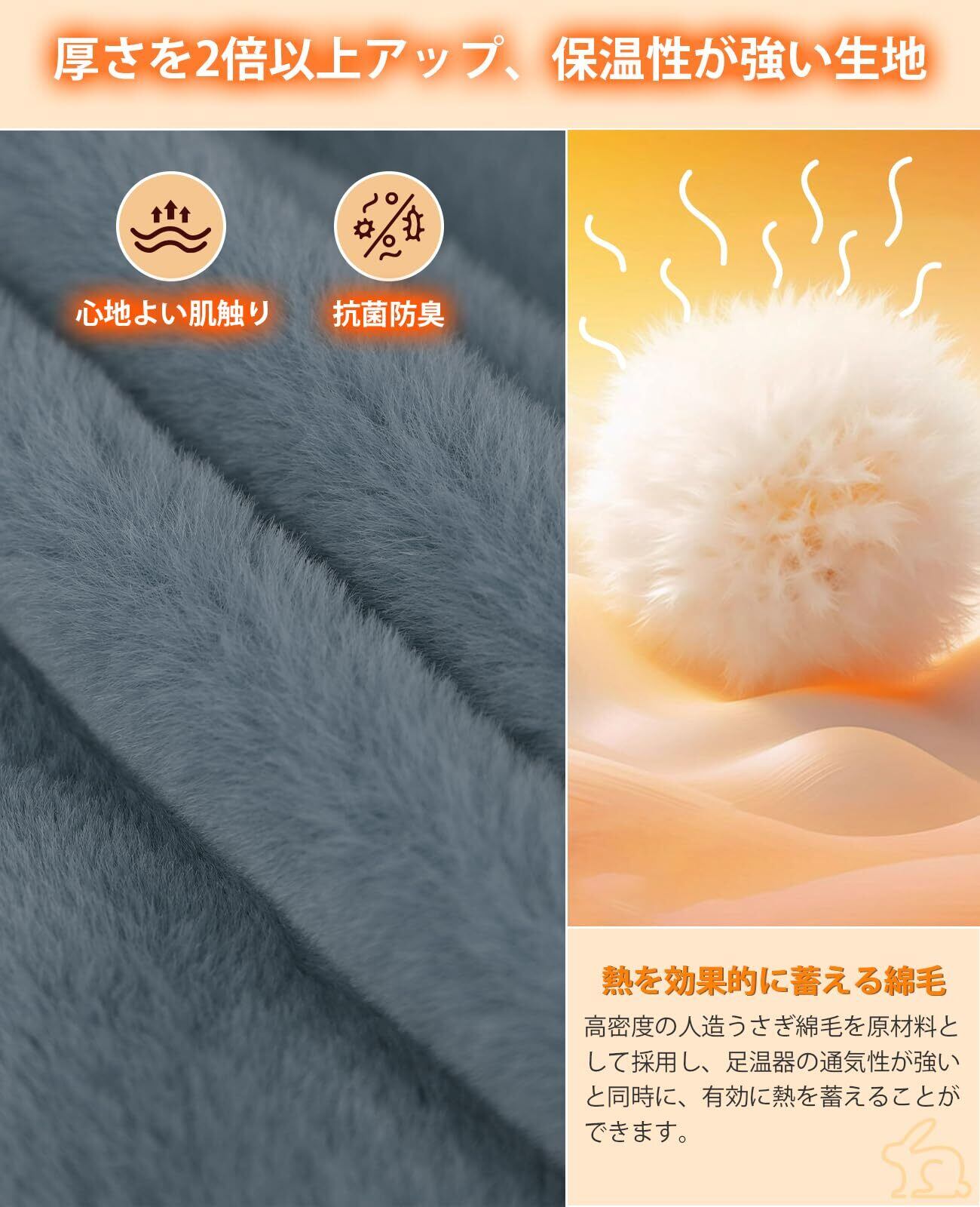 【厚手強化・強い保温性・柔らかい生地】INZYLAホットマットの生地は昨年より厚手で、ふわふわの人造うさぎ毛を採用し、保温性はさらに強くなり、肌触りももっと柔らかいです。その上、従来品と比べて、ポケットのデザインは足を入れてもストレスがなく、ボタン付きのデザインも冷気の侵入を効率的に防止します。また、この足温器本体は50℃以上の温度で長時間運転すると、ダニ退治効果も実現できます。それ以外、手洗いだけではなく、洗濯機で丸洗いできます。清浄の心配なく安心して使えます。※洗える前に、足温器のプラグ部分を抜いて、本体部分の洗濯可能です。