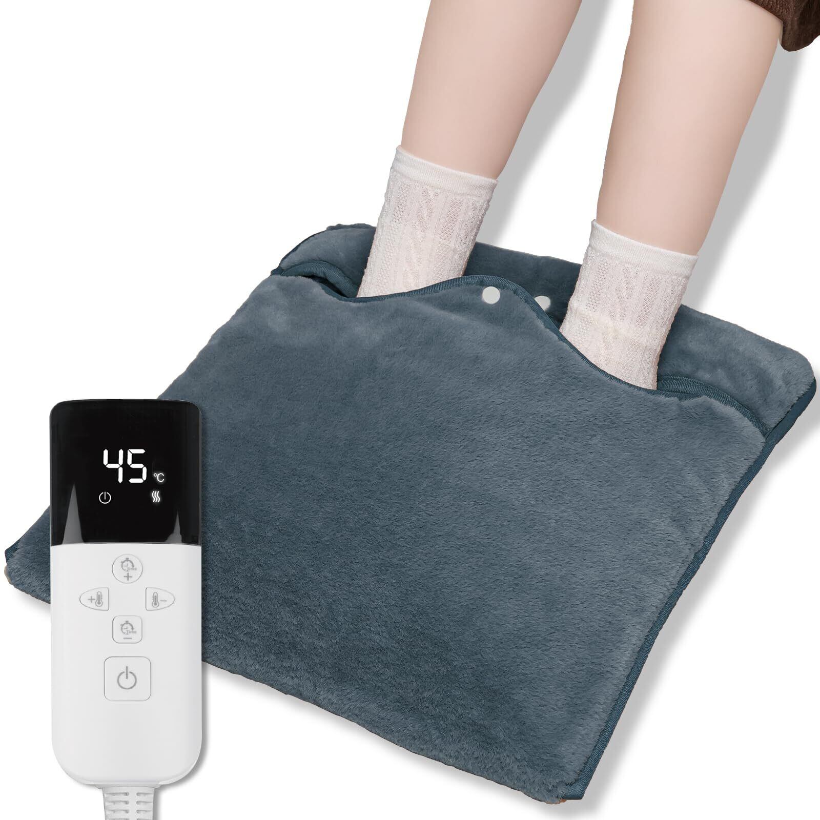 2025年改良型 電気足温器 フットウォーマー 42×42cm【両面加熱・30℃~55℃無段階温度調節・ECOモード運転】足入れタイプ ホットマット 一人用 電気マット 省エネ 暖房器具 あったかグッズ ミニホットカーペット 足元ヒーター ふわふわ手触り 厚手 保温性強い 冷気侵入防止 丸洗い可 通気 抗菌 防臭 過熱保護