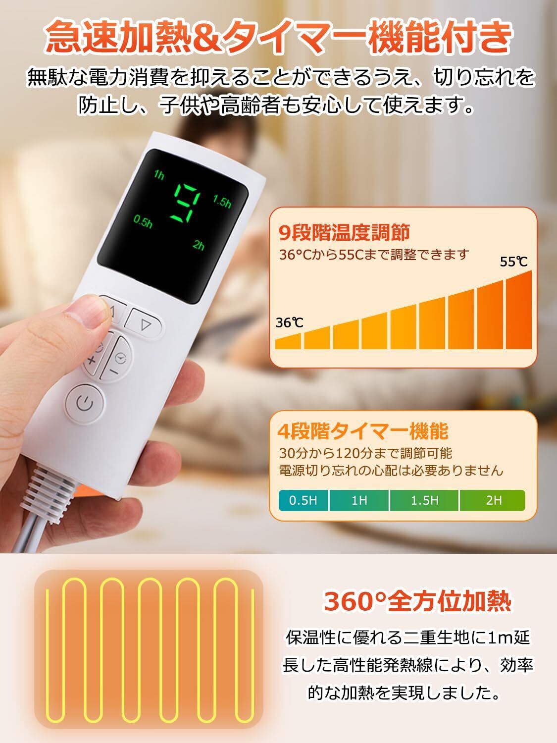 ■【9段階の温度調節で自分好みに調整可能】温度設定は9段階から選べるため、日々の気温や体調に応じて最適な温度をキープできます。心地よい温かさで、作業やリラックスタイムをより快適に楽しめます。