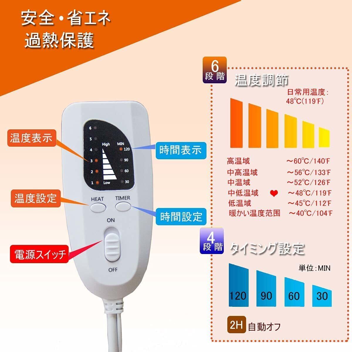 ■【安全性と快適さを両立】過熱防止機能を搭載しており、長時間使用しても安心です。さらに、通気性にも優れており、いつでも快適にお使いいただけます。抗菌・防臭素材を使用しているため、清潔感も保ちます。