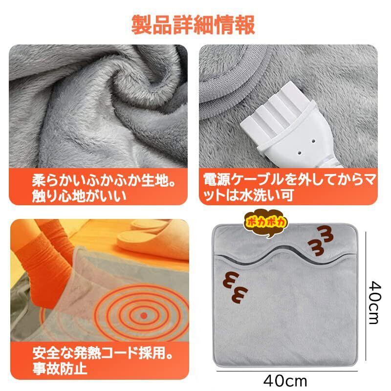 AMOVO 電気足温器 フットウォーマー 省エネ 速暖 通気 防臭 6段温度調整 4段階タイマー機能 電気座布団 usb足温器 足元ヒーター 暖房器具 軽量 耐久 足入れヒータ デスク 電気ホットマット 電気カーペット 洗濯可丸洗い 男女兼用 寒さ対策 冷え対策 40cm*40cm