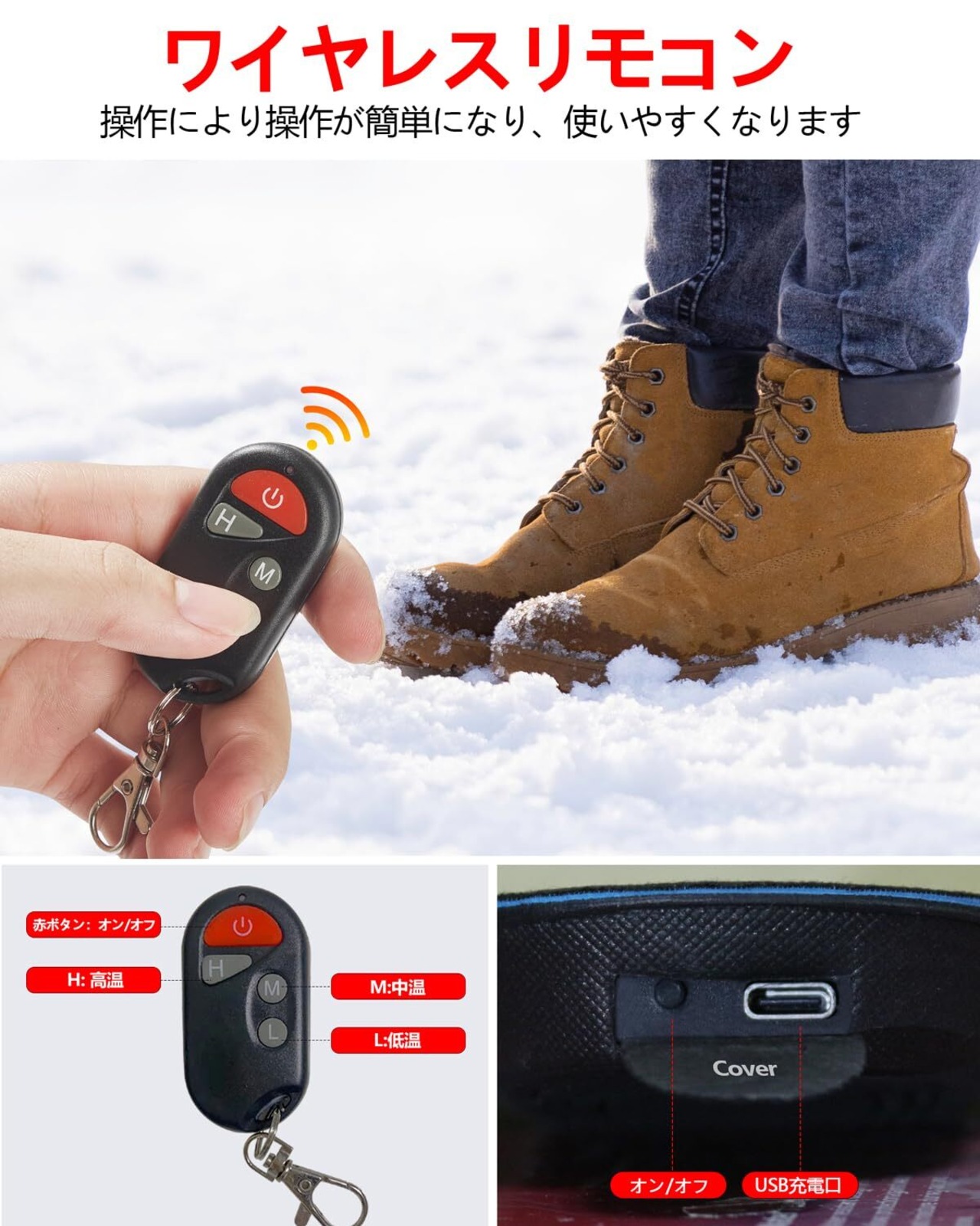 【パッケージ内容&期間】パッケージ内容:2×電熱インソール、1x無線リモコン、1x充電ケーブル、1x取扱説明書(※注文番号が書の代わりとなります)。当店の商品をお買い上げ12ヶ月以内に品質いたします。万が一商品に不具合がございましたら、どうぞ遠慮なくご連絡下さい。無償交換あるいは返金の対応は可能です。