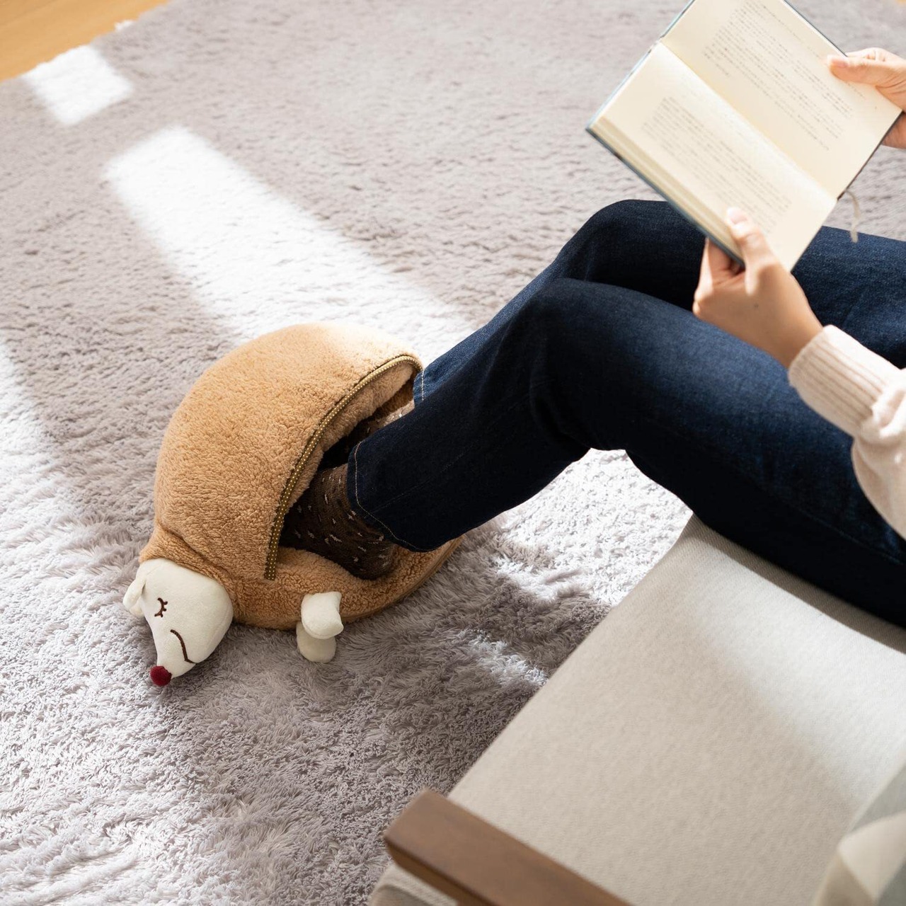寒〜い冬もあったかぽかぽか足湯気分が楽しめる蓄熱式フットウォーマー「ぬくぬく」。コードレスなのでどこにでも持ち運べて、繰り返し使えます。蓄熱した湯たんぽをフットウォーマーに入れると、足湯のようなじ〜んわりとした暖かさが体感できます。面倒なお湯の入れ替えは一切不要で、15分間蓄熱するだけで、最長4時間(フットウォーマー使用時)も暖かさが持続します。湯たんぽとして膝の上に乗せてカイロとして使ったり、布団の中でアンカとして使うこともできます。フットウォーマー・カイロ・アンカとして使える1台3役のスグレモノです。