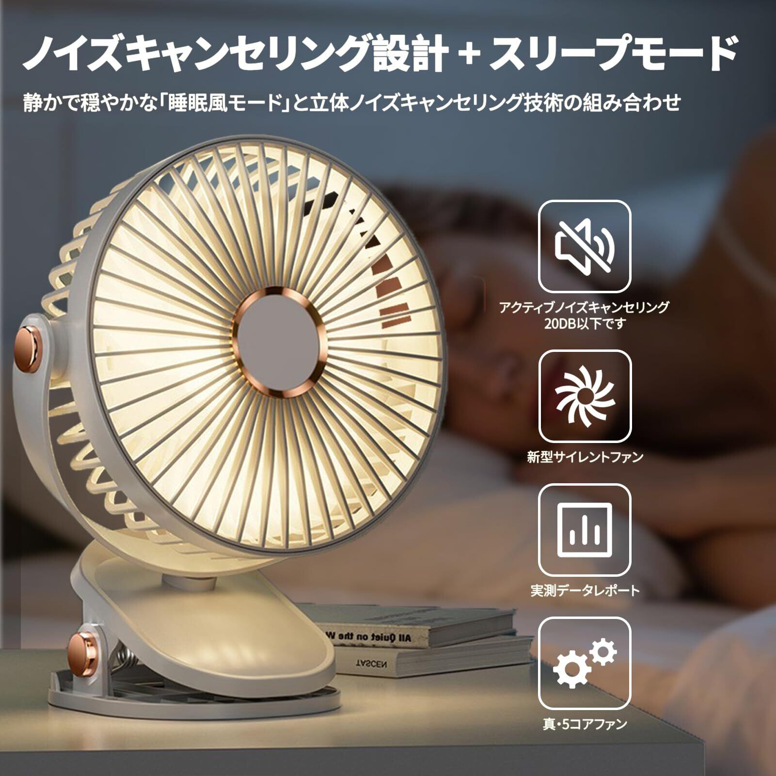 2025新登場 【極静音&夜灯機能】卓上扇風機 小型 USB充電式クリップ扇風機 5段階風量調節 26db超低騒音 LEDライト付き 軽量 ミニ扇風機 循環ファン 壁掛け可能 デスクファン 熱中症予防対策 職場/自宅/学校/車に適用