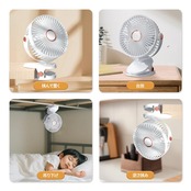 【五段階の風量調整で様々なシーンに適応するクリップ扇風機】この充電式クリップ扇風機は、五段階の風量調整機能を備えており、様々なシーンに応じて最適な風を提供します。一段目はやさしい風で、子供用や読書時に最適です。二段目は爽やかな風で、仕事中の集中力を維持します。三段目は涼しい風で、暑い日の冷却用として理想的です。四段目は自然風で、睡眠時に心地よい環境を作り出します。