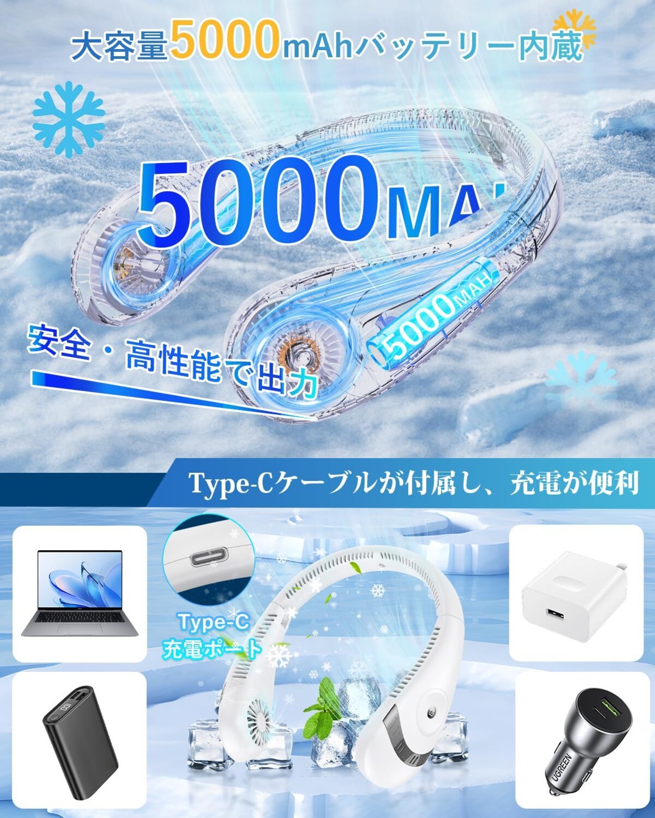 【限定セール】ネッククーラー『2025年夏革新型』Oldstar ネックファン 5000mAh 首掛け扇風機 LEDディスプレイ表示 携帯扇風機 瞬時冷却&熱中症対策 3段階風量調整 静音設計 超長時間連続稼働 折りたたみ式 羽なし自由角度調整可 Type-C充電式 遠足/自宅/家事などに最適 日本語取扱説明書付き(ホワイト&ブラック)