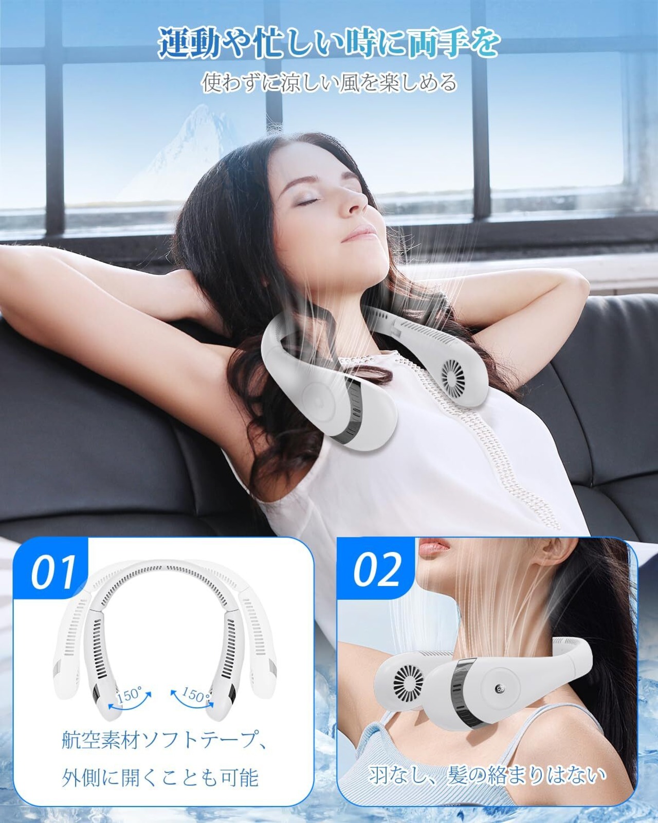 【柔らかくて肌に優しい& 夏の様々なシーンに対応】葉のないネックファンは高品質の肌に優しいもので作られています、および冷却材料。個人的な冷却ウェアラブルネックファンは、あらゆる年齢の男性と女性に適しています。高齢者や子供が使用できます。長い間着ても不快感や縛られることはありません。個人的な冷却、オフィス、アウトドアアクティビティ、暑い日には、ジム、キャンプ、旅行、ハイキング、登山、スポーツなど。通勤や旅行、アウトドアでの使用にも最適です。